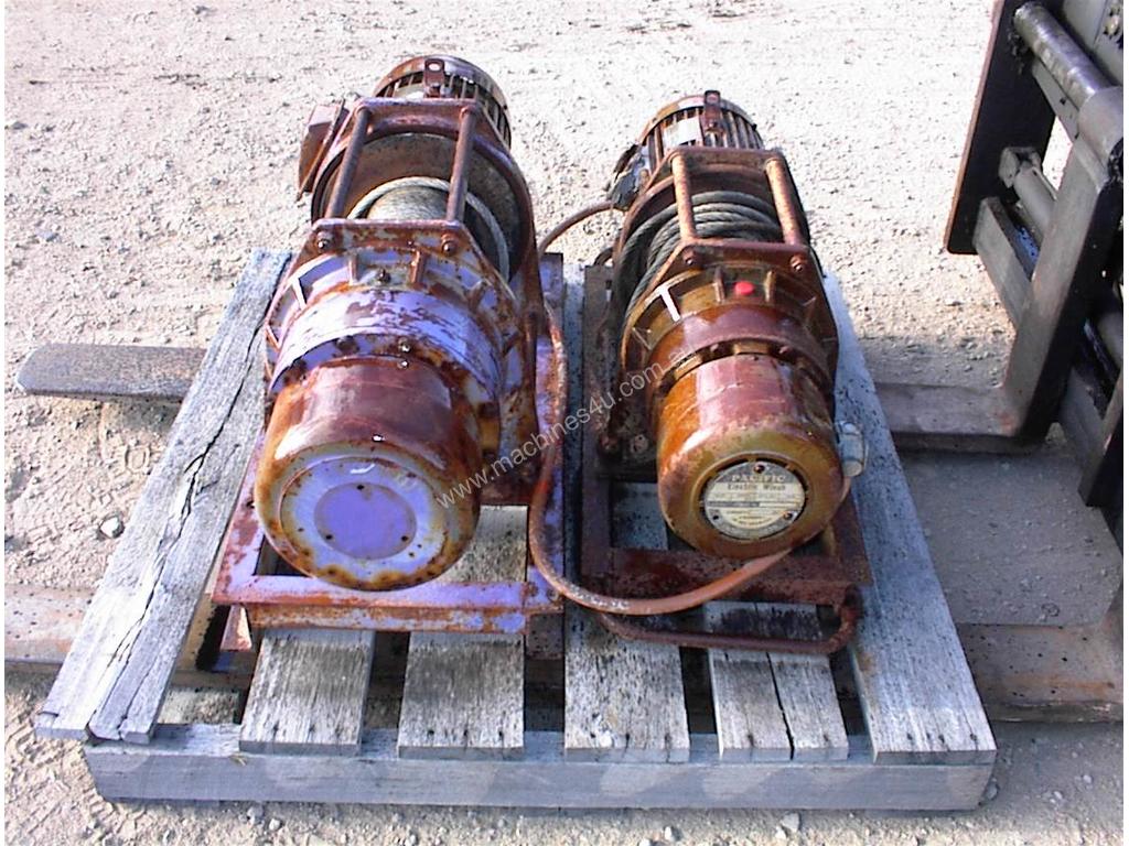 Pacific Electric winch/hoist, 900KG SWL, 3 phase 415 volt, 1994 build, Teco 5HP/3.7KW electric motor, electric brake, 16mm cable on winch, fair condition.