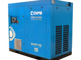 The CAPS BMF45-10 compressor is packed with the latest energy saving technology which translates in to reduced energy costs and less impact on the environment. The CAPS BMF45-10 comes standard with a variable speed drive (VSD) and a permanent magnet motor. With a 2-year warranty on the complete unit and a lifetime warranty on the airend* you can have the piece of mind you are buying a quality product which will keep you up and running.