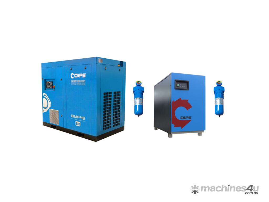 The CAPS BMF45-10 compressor is packed with the latest energy saving technology which translates in to reduced energy costs and less impact on the environment. The CAPS BMF45-10 comes standard with a variable speed drive (VSD) and a permanent magnet motor. With a 2-year warranty on the complete unit and a lifetime warranty on the airend* you can have the piece of mind you are buying a quality product which will keep you up and running.