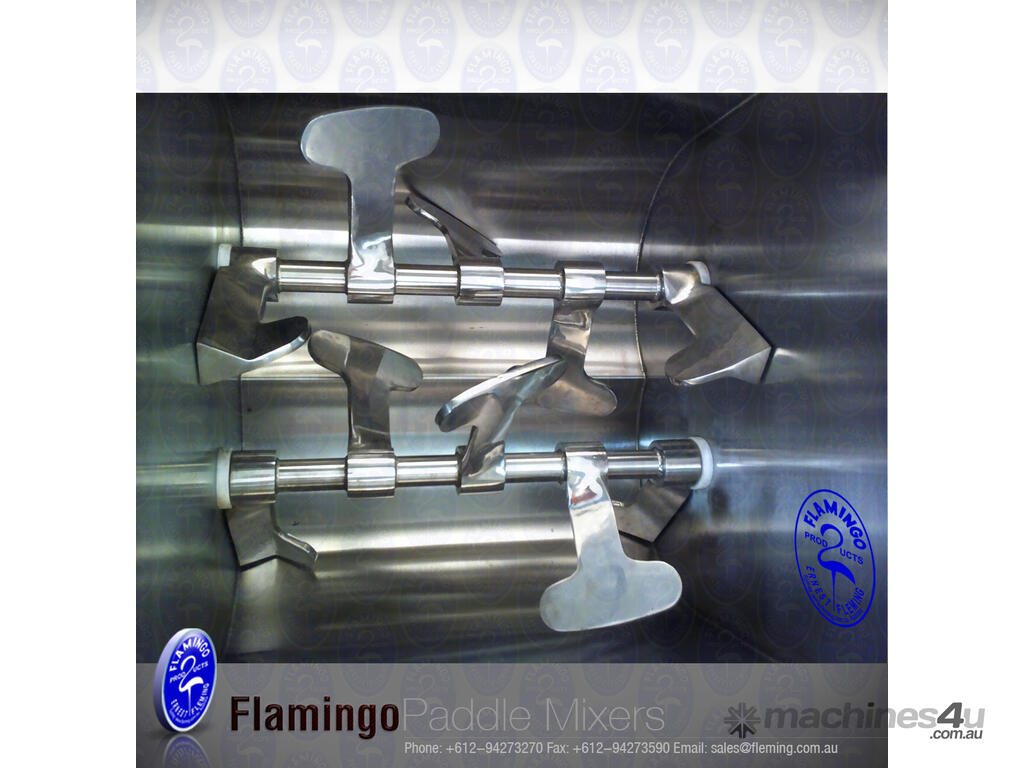 This Paddle mixer requires only a small area but can handle large loads. It consists of a container, helix mixing blades and transmission parts. The helix blades are in two or three tiers. The outer helix will move the material from its two sides to the central part, while the inner helix will transfer the material to the two sides, performing a kind of convection mixing. This paddle mixer is generally used in mixing adhesive or cohesive powder granules and mixing processes in which liquid and pasty materials are added. It is especially suitable for mixing materials with a large quantity and whose types are not frequently changed because of the cleaning difficulties. SPECIFICATION: