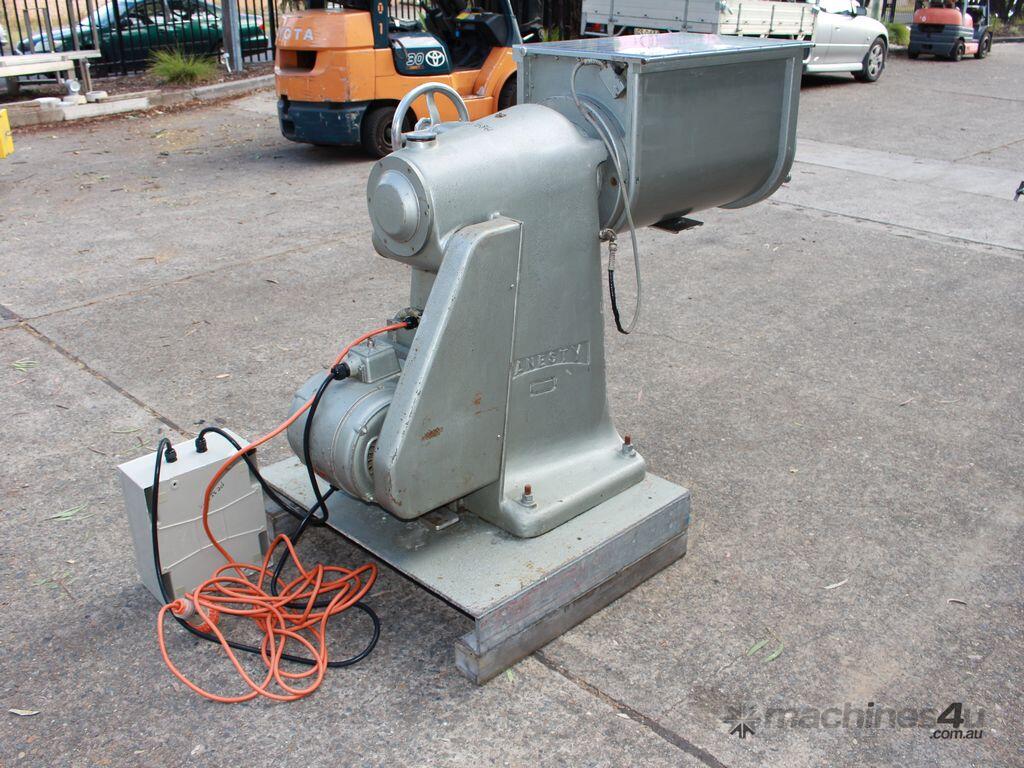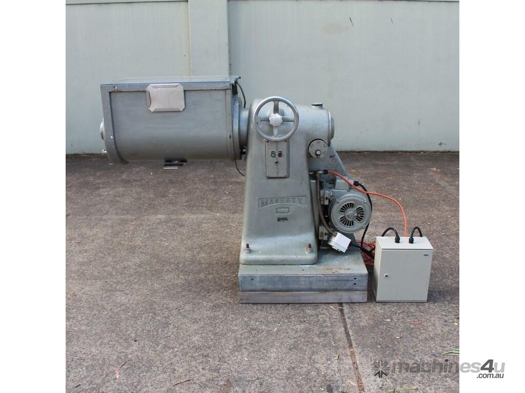 Paddle Mixer, "Manesty", Type H, 75L capacity, size 680mm x 380mm x 490mm deep, stainless steel wetted parts, 370mm dia rotor, belt driven by 3 phase 2hp 1440rpm motor, tipping bowl, complete with a bifold grid and acrylic lid