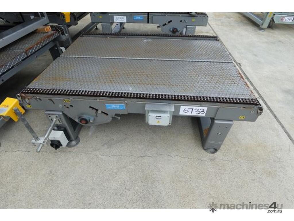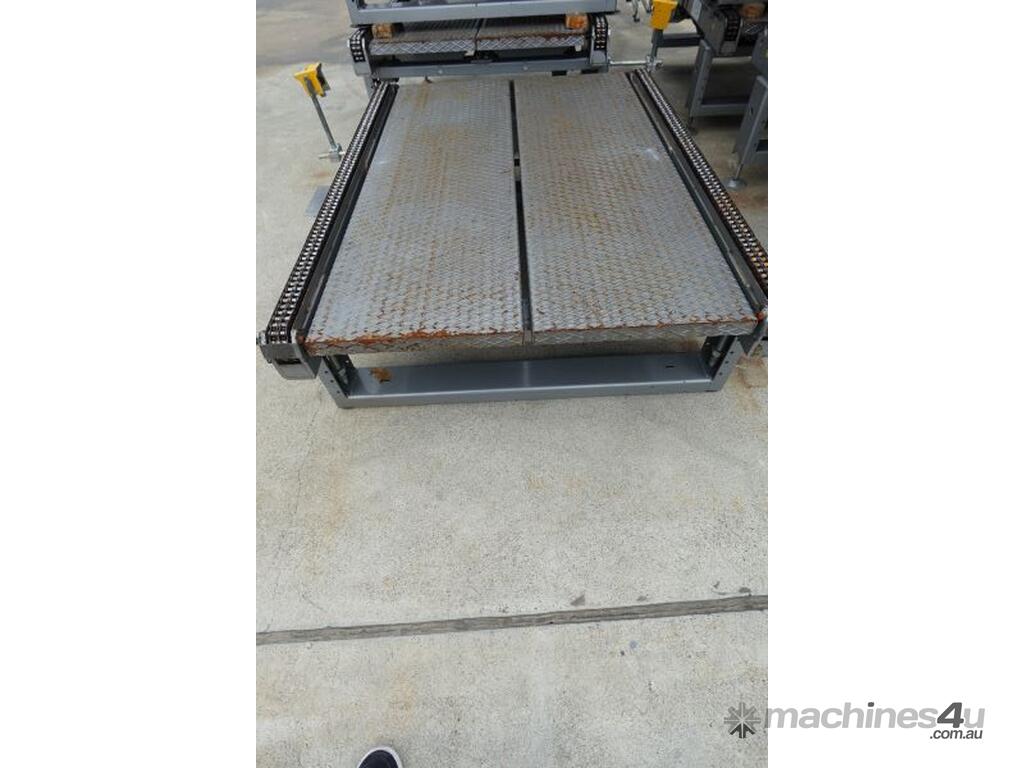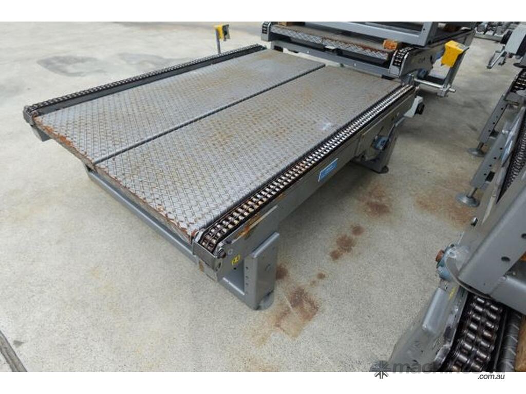 Unit is a steel pallet chain conveyor.