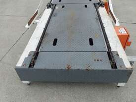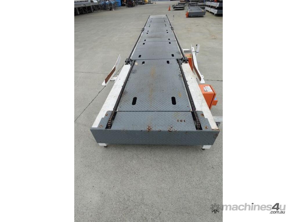 Unit is a heavy constructed steel pallet chain conveyor.