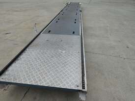 Conveyor has aluminum checker plate floor.