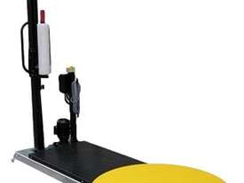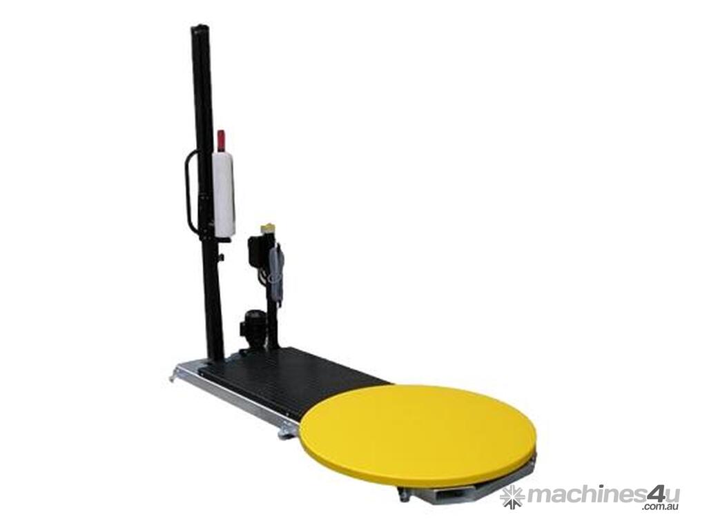 The user-friendly system features a powered rotating turntable with variable speed control, allowing operators to adjust the wrapping process for optimal efficiency.