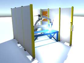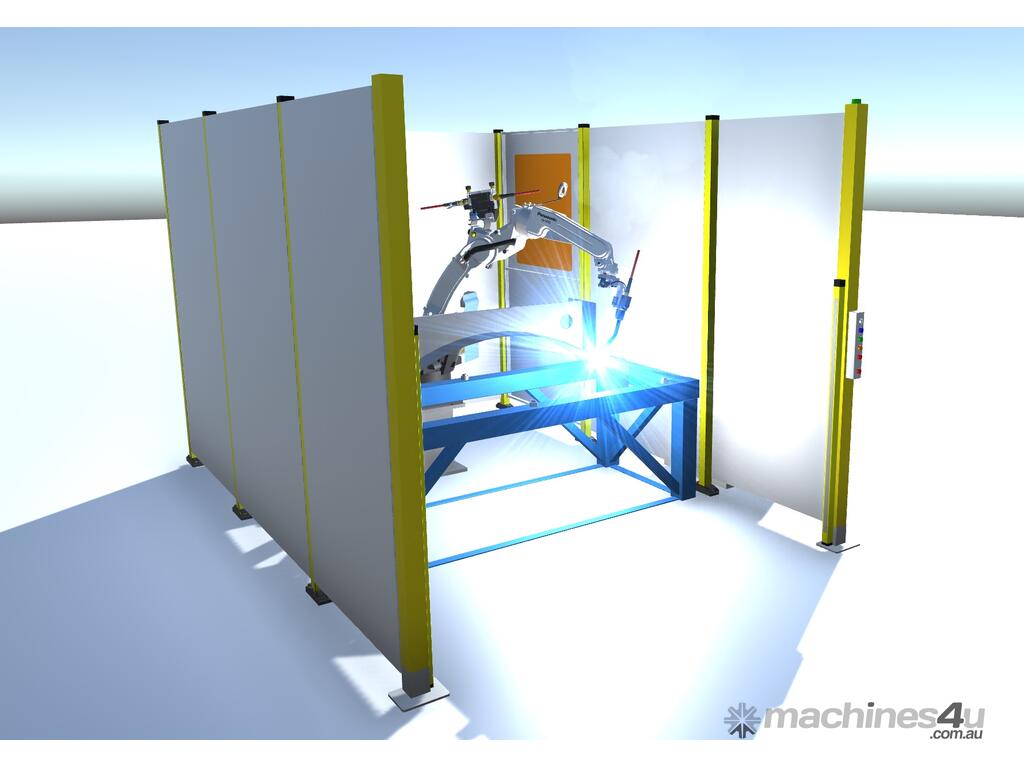Australian fabricated safety cell, sliding access door, robot pedestal & jig table.