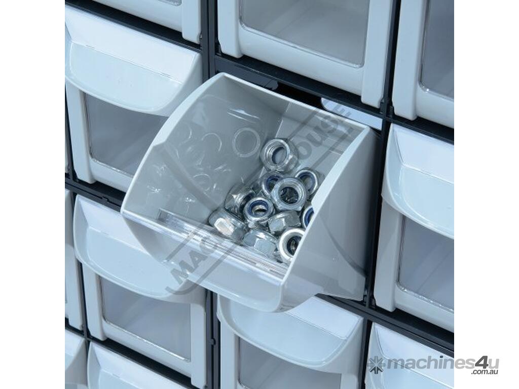 Quality fixed storage system for small components such as screws, bolts, tools, great for keeping your work area organised.