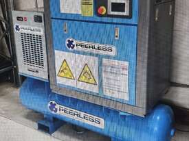 1). PEERLESS WBVZ 7.5kw 10hp 415v 10 BAR 35.4CFM VARIABLE SPEED 3-IN-1 FULLY FEATURED ROTARY SCREW COMPRESSOR Year 2022 INCLUDING BUILT-IN REFRIGERATED AIR DRYER/FILTERS MOUNTED ON 300 LITRE AIR RECEIVER TANK, GENUINE LOW 605 RUN HOURS/73 LOAD HOURS. ULTIMATE HEAVY DUTY TOP-SPEC MODEL. VIRTUALLY 'NEW'.