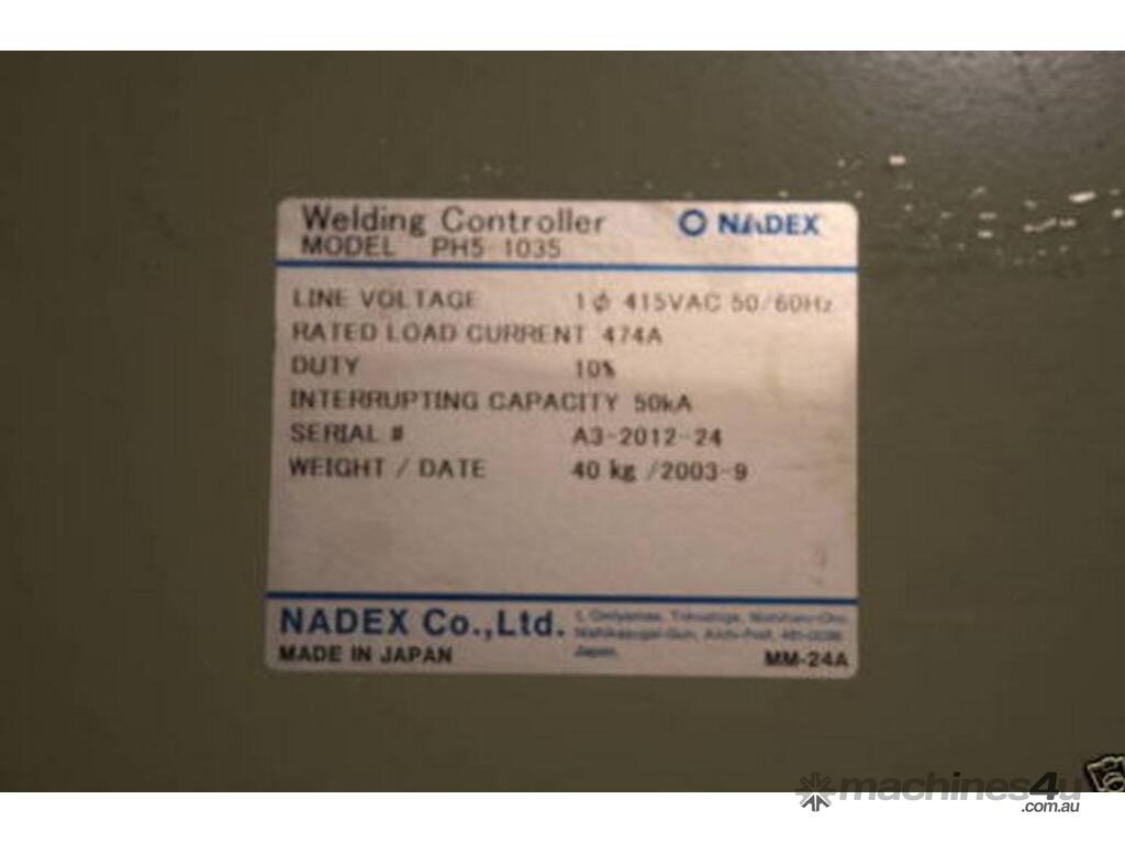 You are looking at a used Nadesco Nadex phase 5  water cooled resistance welding controller. If was pulled from a working environment due to a plant closure and is guaranteed not DOA. It is clean and tidy and in excellent physical condition.