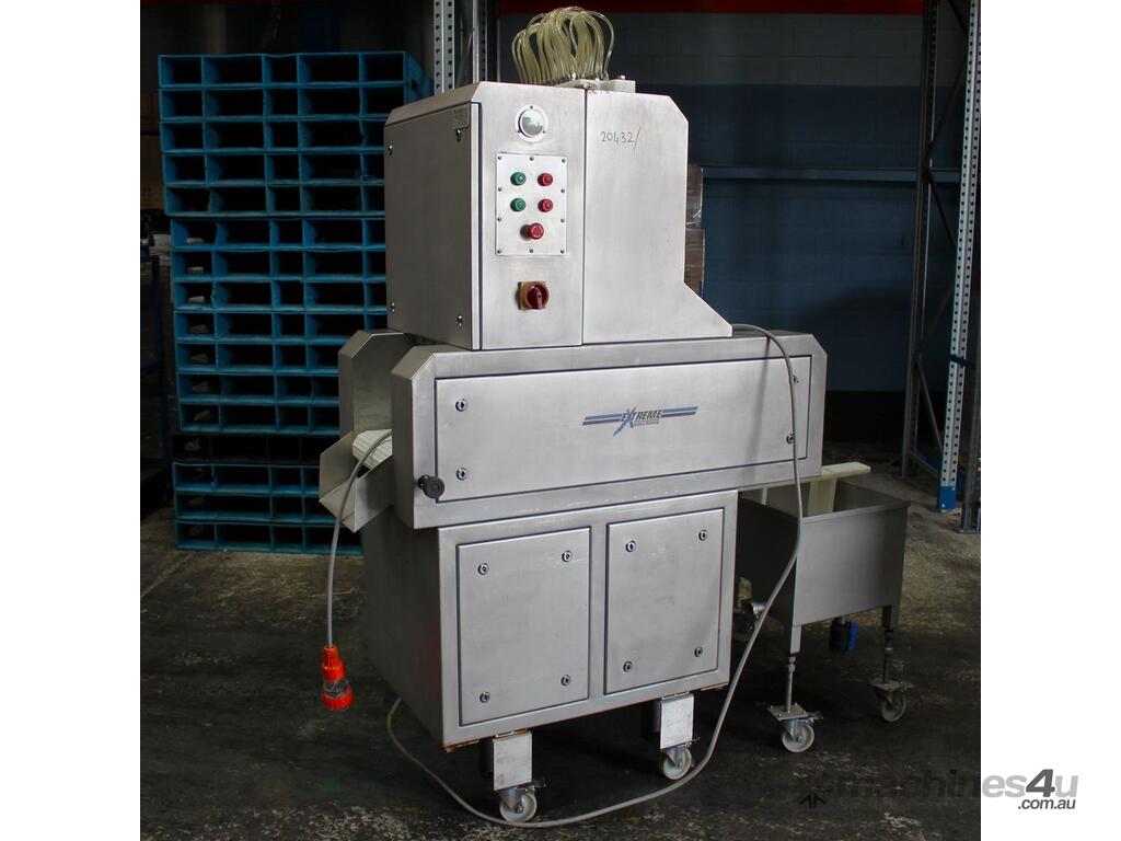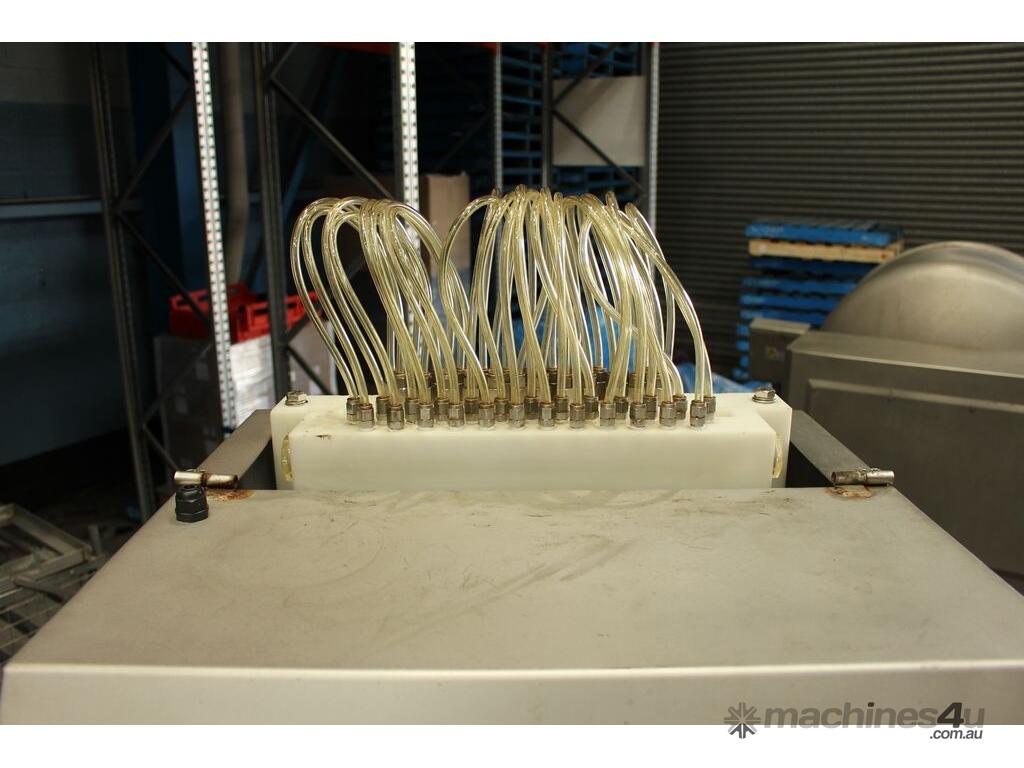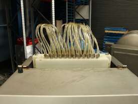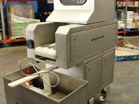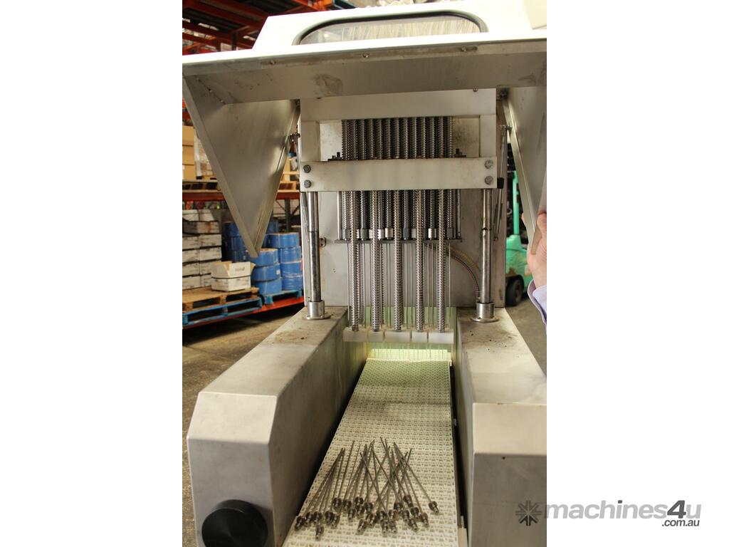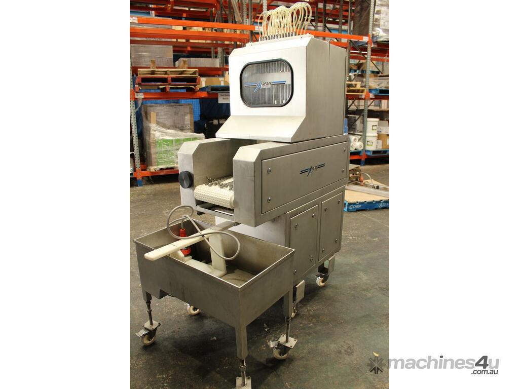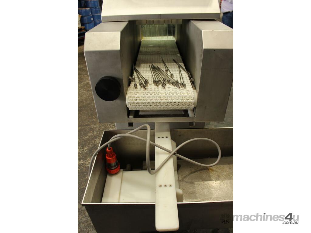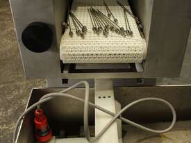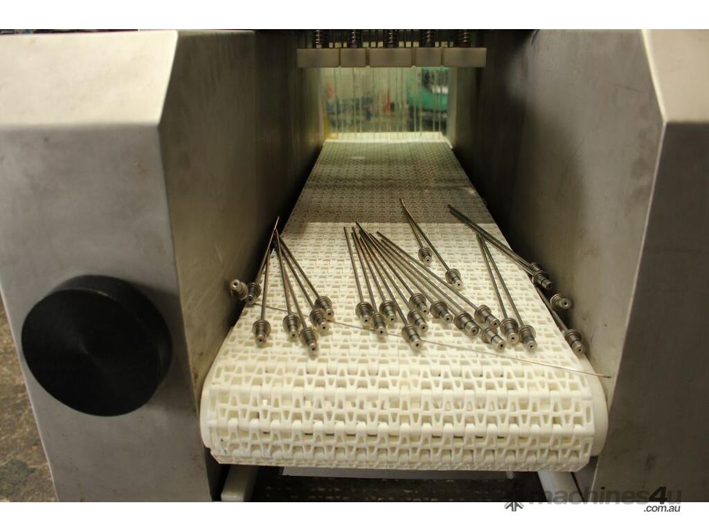 Needle Injector, "Vacuum Packaging System", Model NI 25, belt conveyor 300mm wide x 1250mm long, complete with stainless steel holding tank, 3 phase 415V, 25 qty needles installed, plus 25 qty spare needles, built year 2017