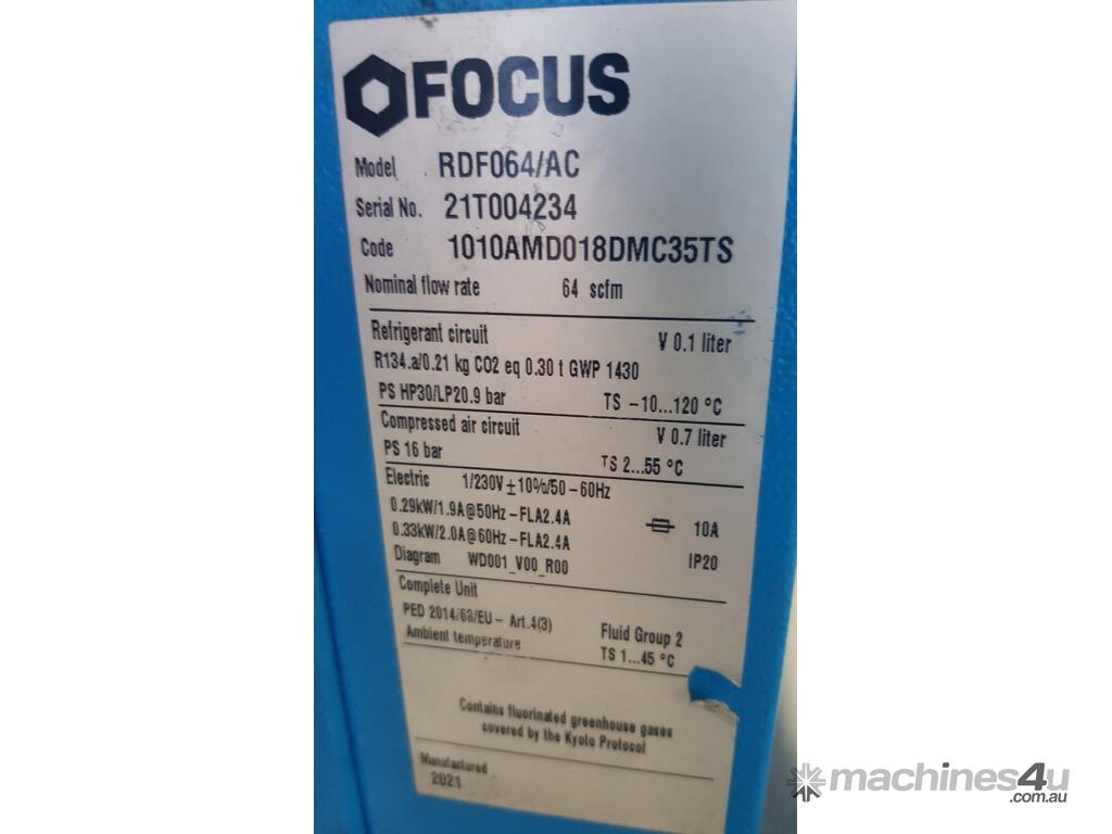 - OPTIONAL: FOCUS 64CFM REFRIGERATED AIR DRYER 240v NEW - POA. REQUEST BROCHURE.