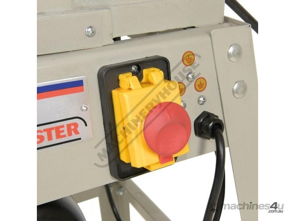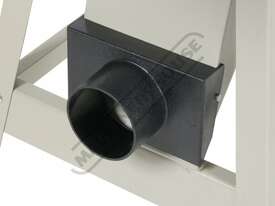 The side fence, which is a heavy cast iron unit with a ground surface, is held by a robust cast iron bracket. This is clamped to the table by a substantial hand lever and slides smoothly across the bed guided by a rail. The fence is fully adjustable for angles between 45°, 90° and 135°. Waste extraction is from the side rear of the machine via a 100mm outlet port that is fixed to the stand and should be connected to a suitable dust extractor.