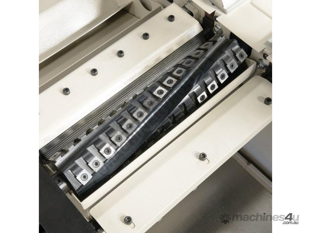 The surfacing tables are 1100mm long, made from cast iron and precision ground finish to ensure material to slide smoothly to produce accurate results. The spiral cutter head is fitted with German quality carbide inserts and powered by a powerful 2.2kW / 3hp, 240V motor that can handle the toughest timbers to achieve superior finish every time.