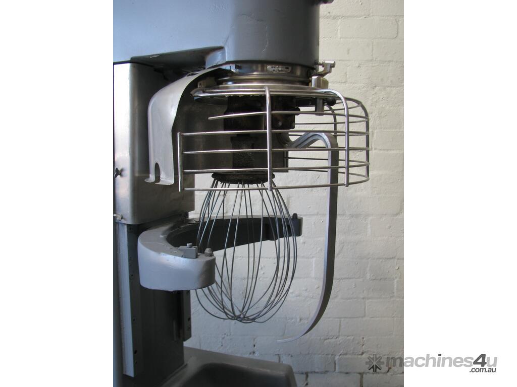 Has three attachments: whisk, paddle and dough hook. Has a built on bowl scraper