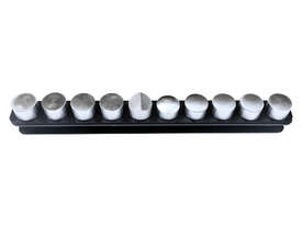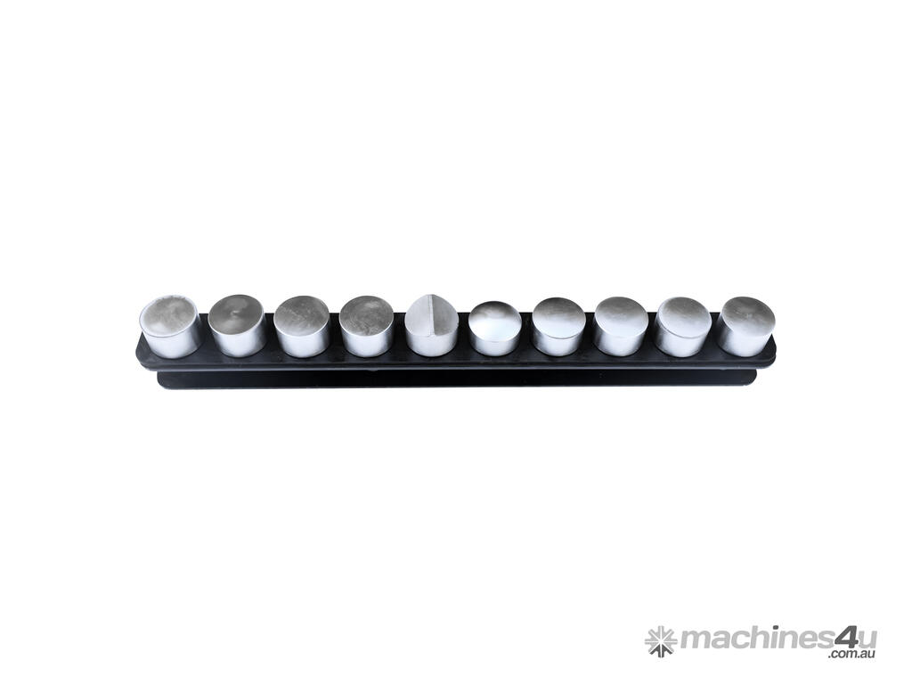 Versatile Anvil Set. Includes 9 different radius dies plus a flat one, enabling a wide range of curves and flat smoothing—perfect for diverse applications from motorsport fabrication to agricultural equipment repairs.