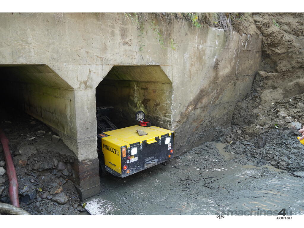With a 531 kg lifting capacity, the M-48 is the larger model in the MiniDozer range. Its zero-emission electric drive, rugged construction and wireless remote control (up to 90 m range) make it ideal for applications such as tunnel and culvert cleaning, cleaning beneath conveyor systems in mines, recycling centre operations, and general bulk-material movement in restricted areas.