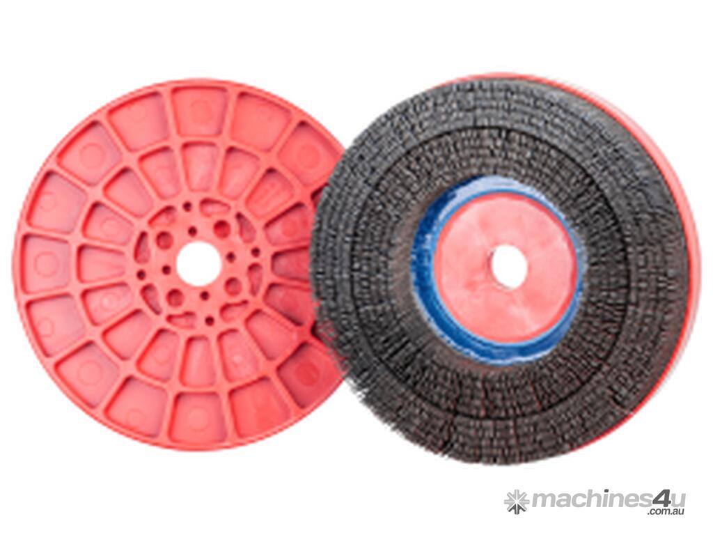 By releasing the locking pin, the spindle is rotated 180 degrees, presenting the Mediumdisc which has multiple soft fingers backing abrasive that finds all holes, cut-outs and edges to remove secondary burrs, and round the edges without taking the material surface off.