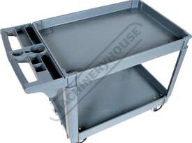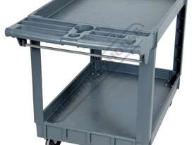 The PSC-2W movable service cart is made from heavy duty plastic and offers wider shelf space than the PSC-3T cart, it consists of 2 extra large storage trays, storage tray handle to store spanners/tools etc. with a 250kg total load rating, this is certainly ideal for the workshop or home garage.