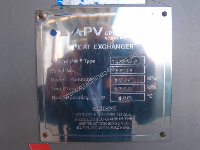 Plate Heat Exchanger, Brand: APV, Model: RKS16/6, Dimension: 485mm W x 1700mm H