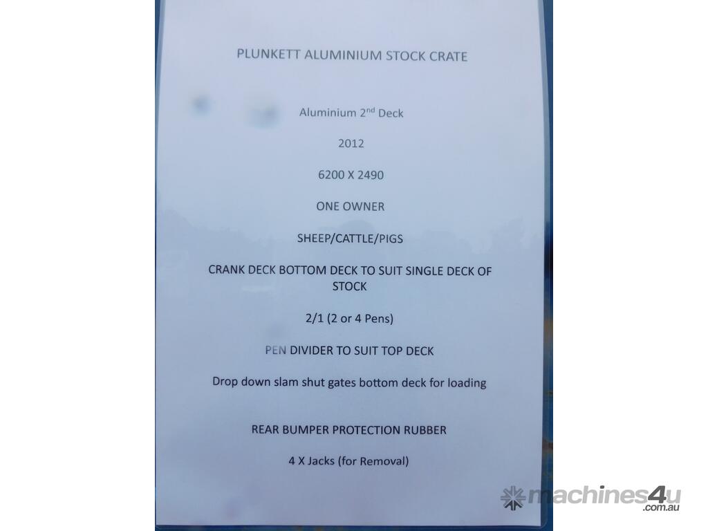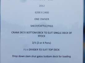 Plunkett 21' Two Deck Stock Crate, Aluminium, 6200x2490, Purchased New, Crank deck bottom deck to suit single deck of stock, Pen divider to suit top deck, Drop down slam shut gates bottom deck for loading.