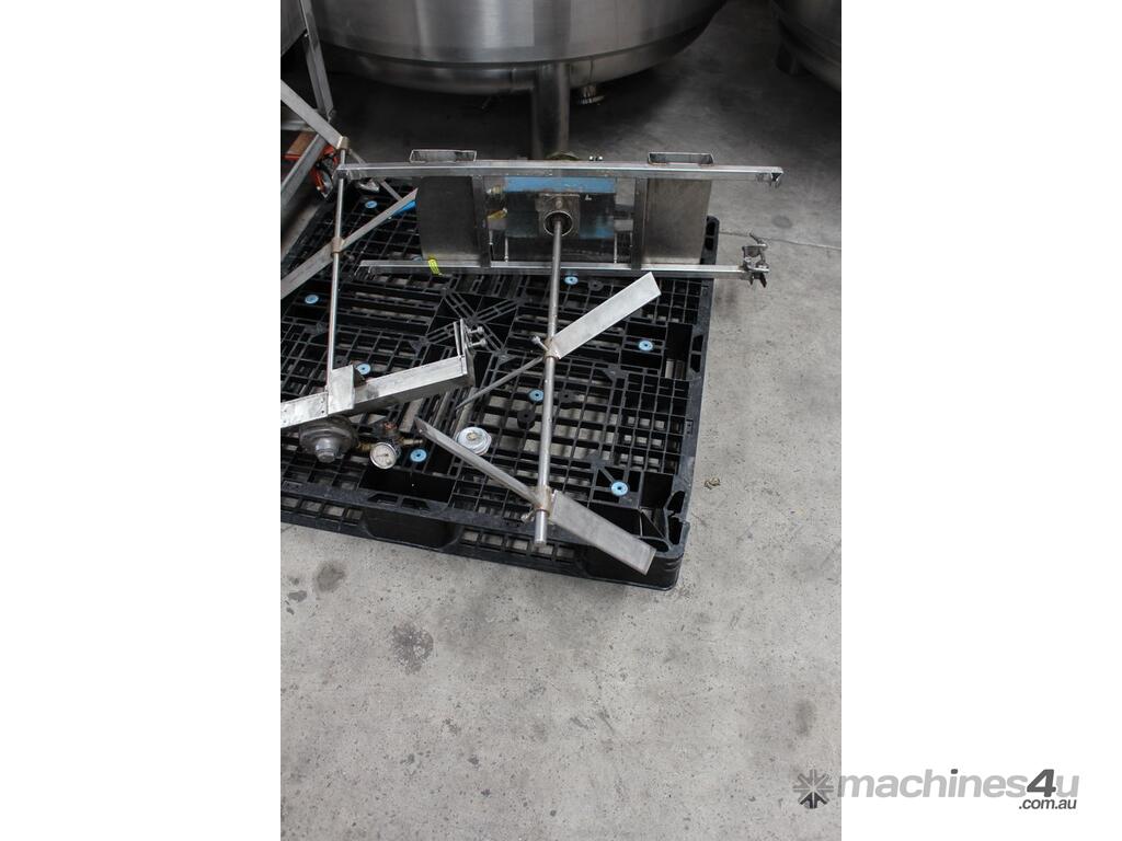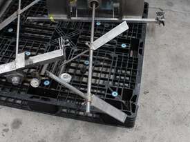 Pneumatic IBC Mixer, 880mm long shaft with 2 x 515mm dia stainless steel blades, 1000mm wide stainless steel bridge with forklift lifting arrangement