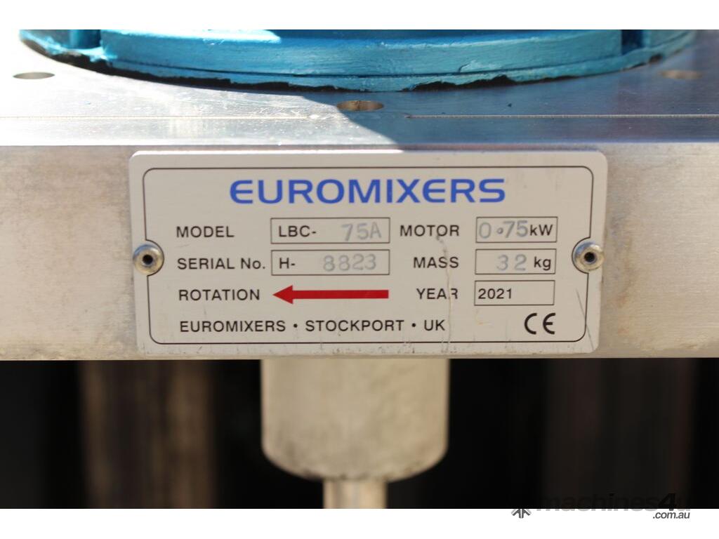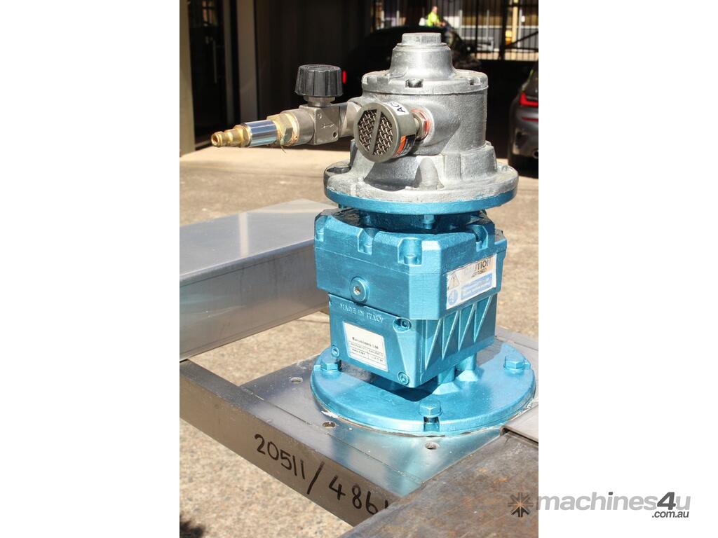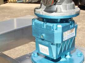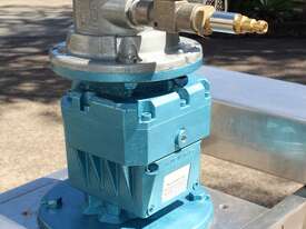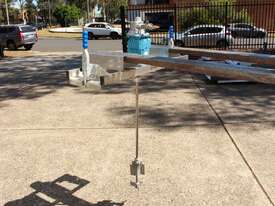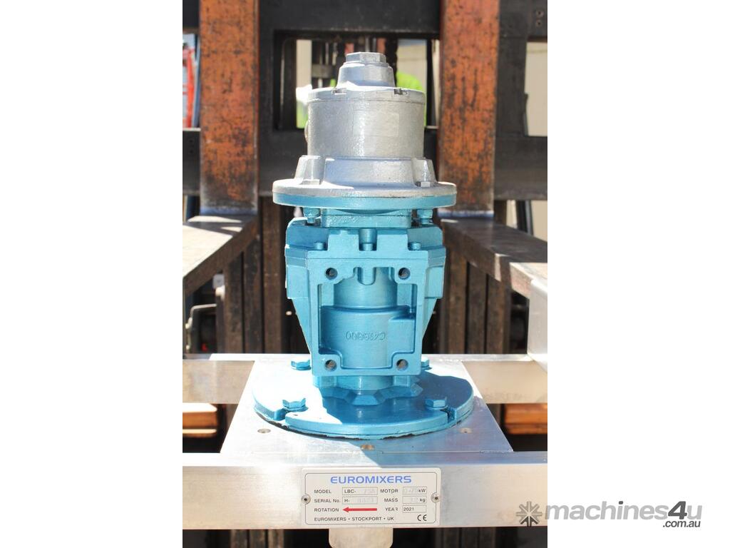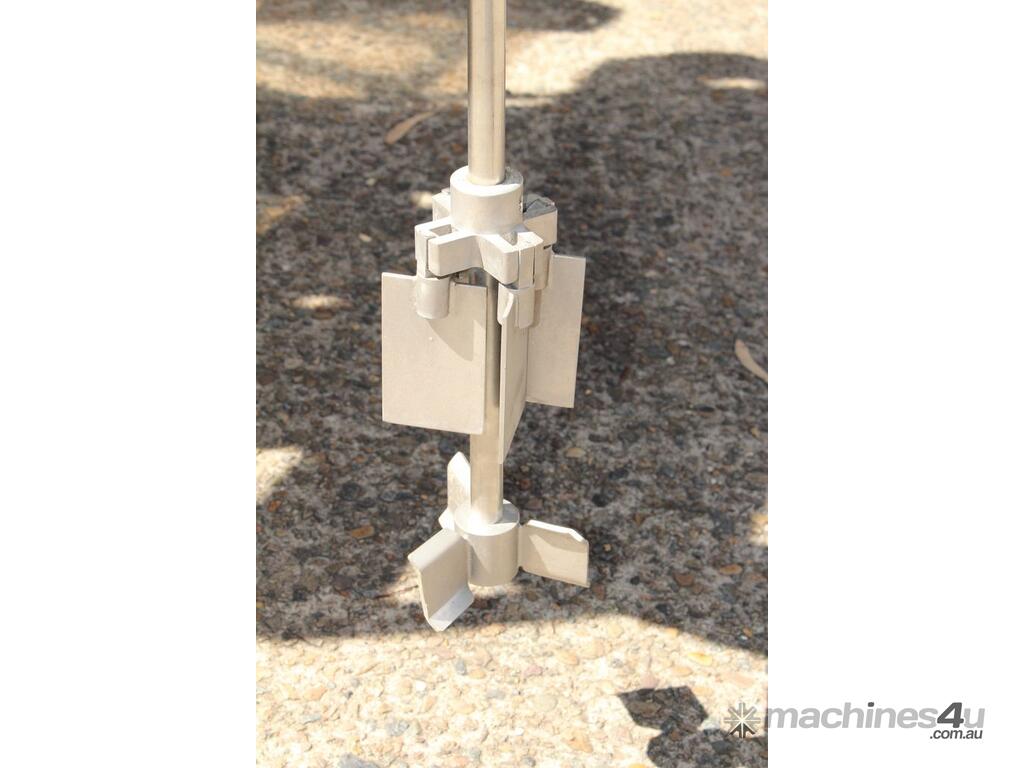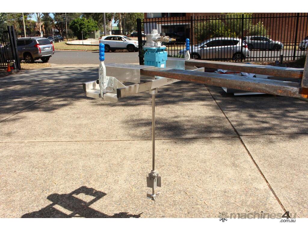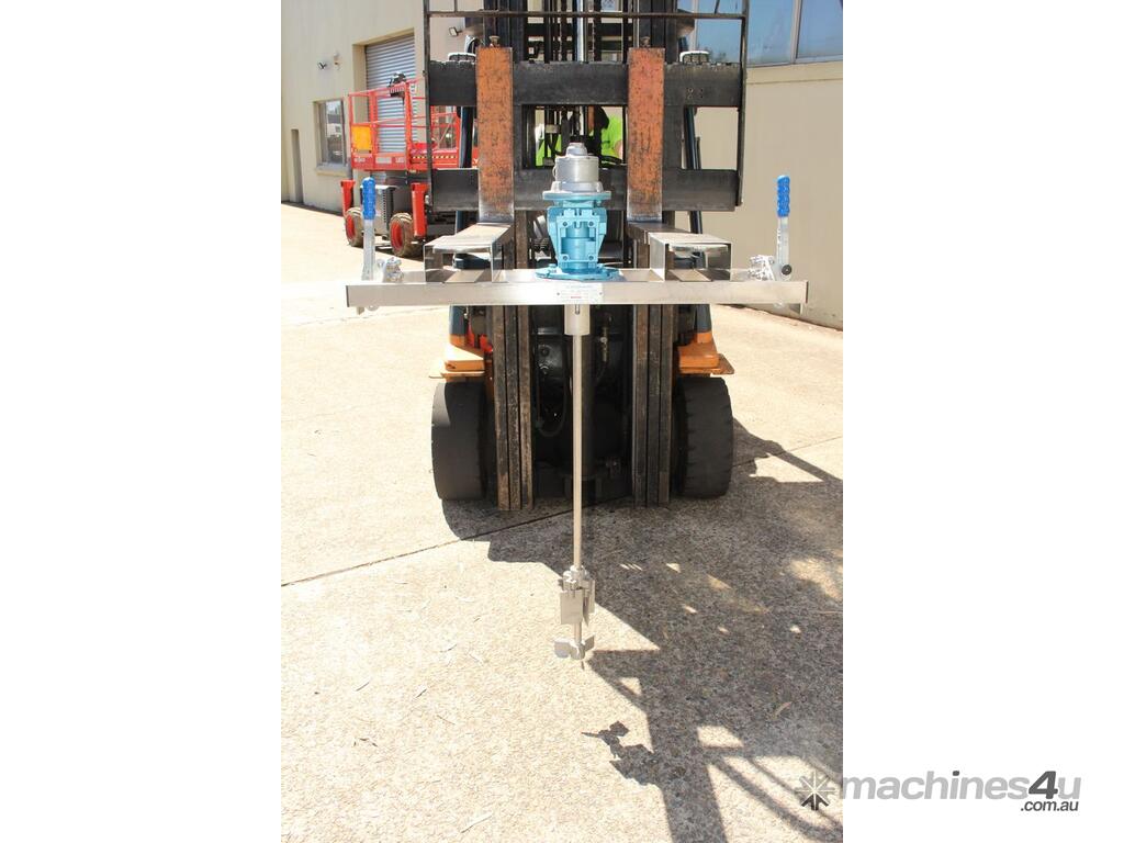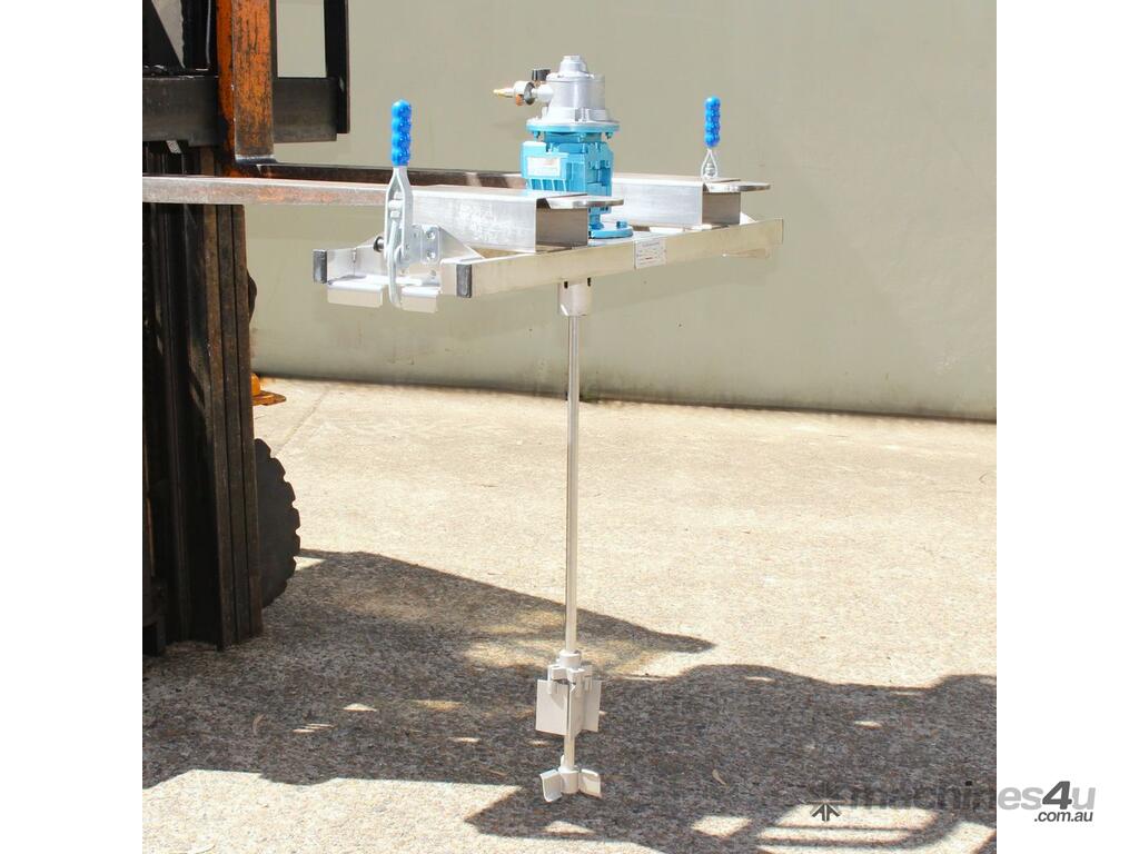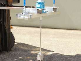 Pneumatic IBC Mixer, "Euromixers", 1000mm long shaft, with 300mm folding type impeller & 150mm dia 3-blade impeller, stainless steel bridge, fork lift module – for lifting with a fork lift truck