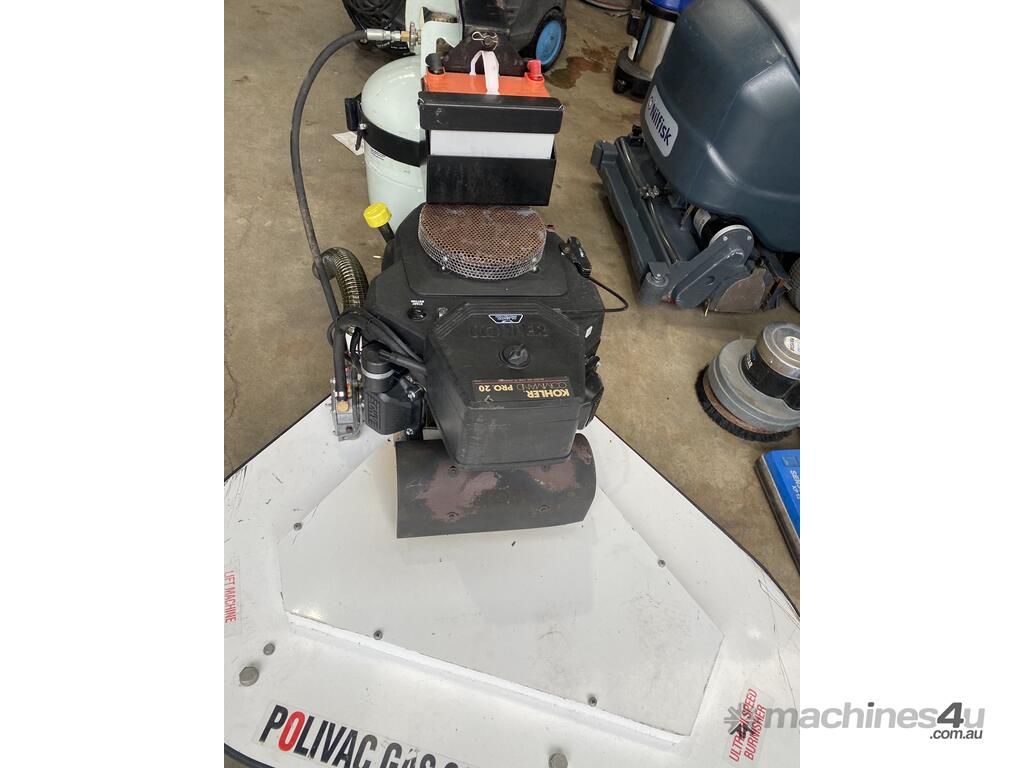 Used and in excellent condition Polivac 38 Inch dual pad high speed burnisher, 20 HP Kohlen engine 2007 built, LPG conversion. 100cm Gas-powered High Speed Burnisher - Gas 38 All-Australian-designed and built straight-line gas burnisher. Over 3700sq. metres per hour coverage. High productivity unit where speed is critical. Contour following system for consistently even floor finish. Ultra-manoeuvrable, high productivity unit where speed is critical. Dual pads 14.9kw (20hp) Kohler motor. Belt drive. Push button electric start. 100cm (38") pass width. Pad speed - 1800rpm. Vacuum - single stage, active centrifugal with metal impeller. Battery - 12 volt, 33 amp hour, wet, sealed, long life. Finish - industrial enamel and powder-coated. Weight - 140kg. Gas bottle - 9kg optional. Parts available all over Australia. 120 Distributors.