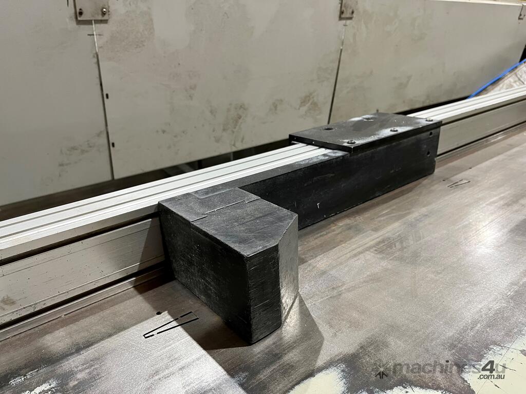 The maximum infeed capacity is 6.3m (cutting 300mm wide x 100mm deep / 235mm wide x 120mm deep using a 500mm sawblade powered by 5.5kW motor)