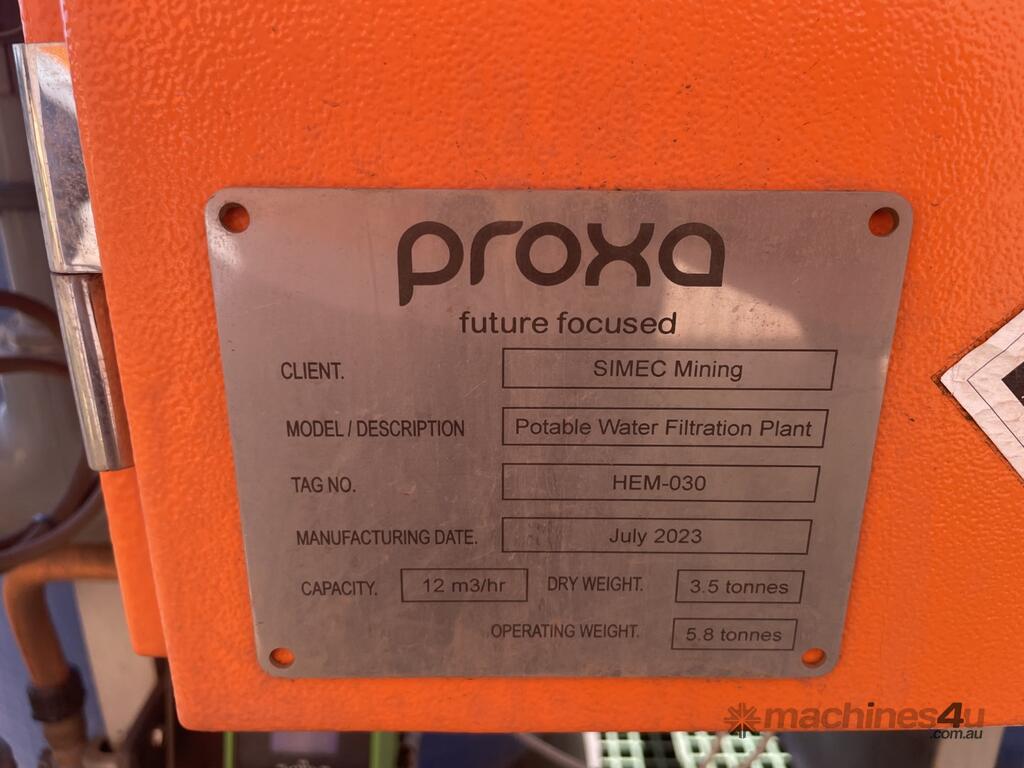 Portabale Water Filtration Plant, 07/2023, Proxa, HEM-030, 12m3/hr Capacity,Skid Mounted, 2x Wave Cyber 3672 Pressure Tanks, Enclosed Control Cabinet, Filters & Pumps, With Bushamans T10500 C1 Poly Tank, 46,400L Capacity, 3.5T Dry Weight, 5.8T Operating Weight