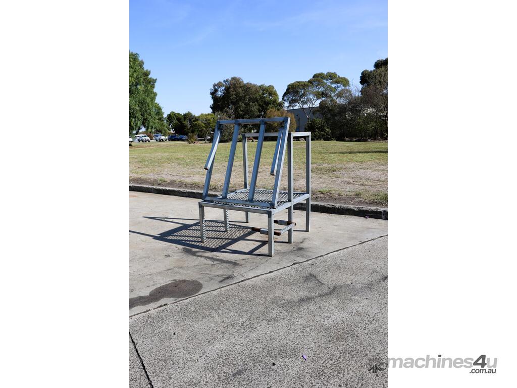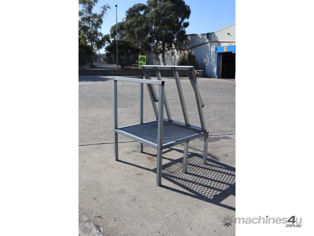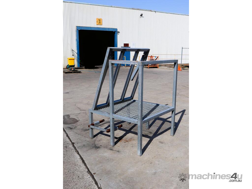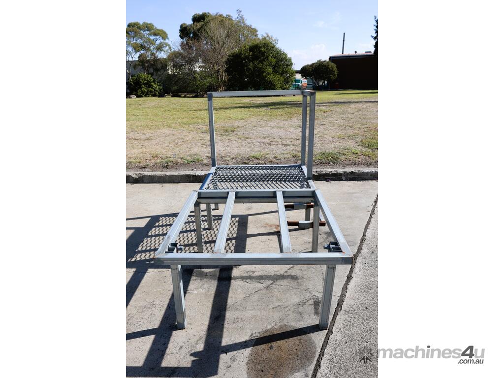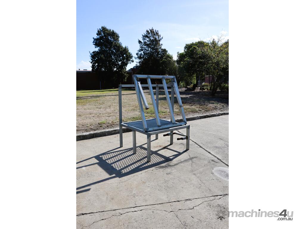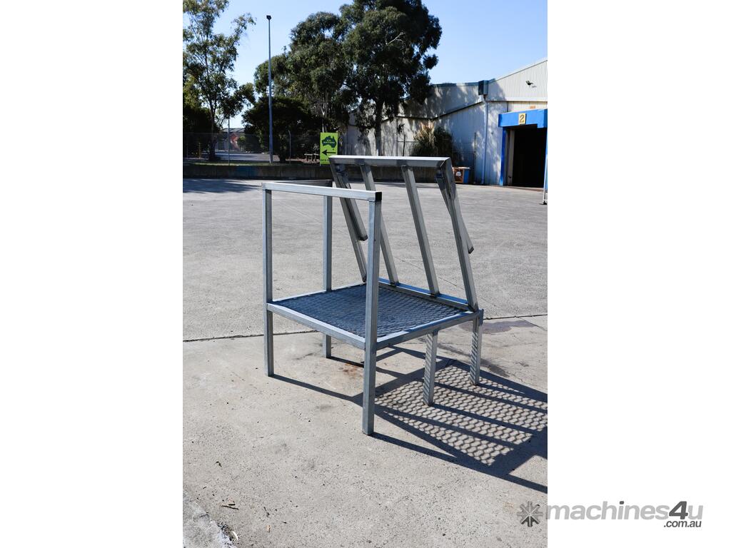 Heavy-duty galvanized steel loading platform. Folds out for use and back in when not in use.