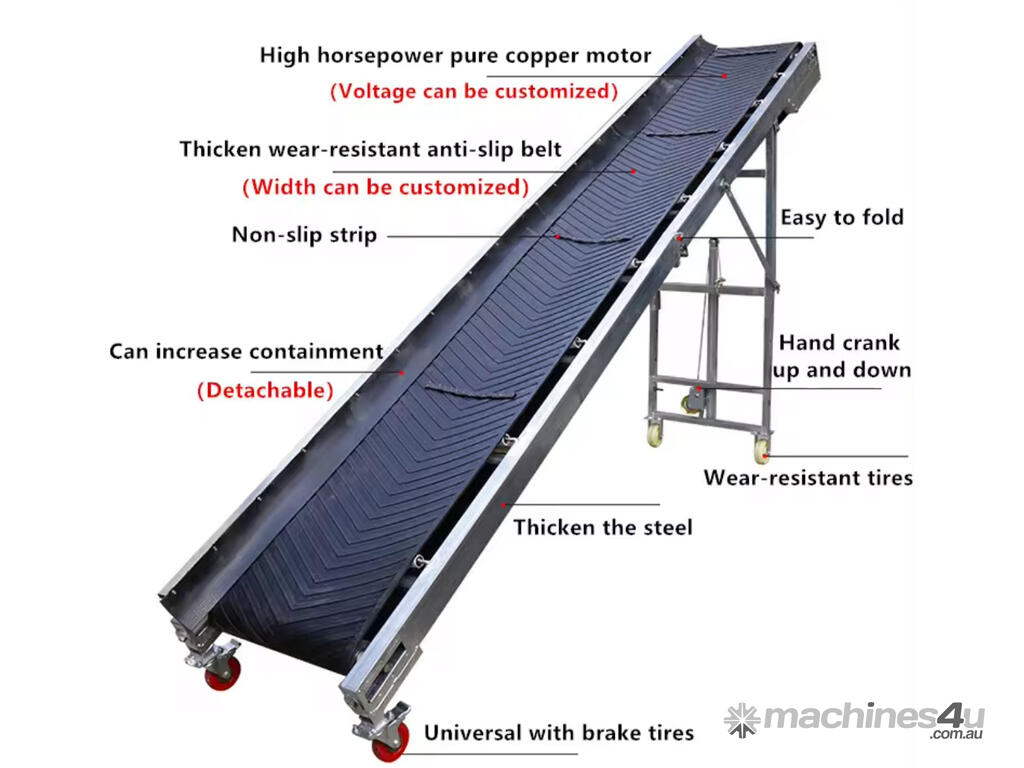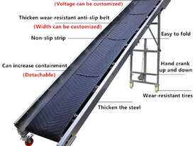 The Folding belt conveyor is a high-efficiency, safe and reliable, and highly mobile continuous loading and unloading equipment. It is mainly used in places where loading and unloading sites are frequently changed, such as ports, docks, stations, coal yards, warehouses, construction sites, sand and gravel yards, farms, etc., used for short-distance transportation and loading and unloading of bulk materials or bags and Cartons.
