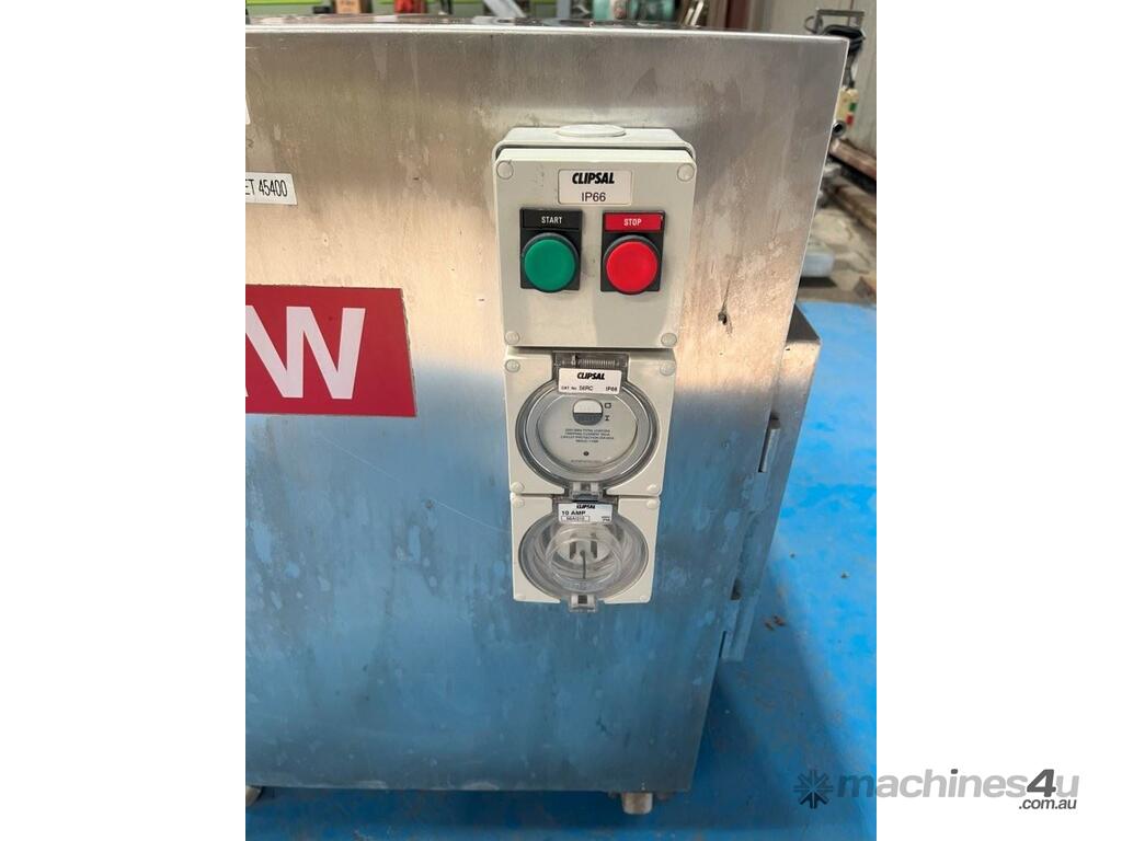 Unit comes with start / stop, saftey switch and emergency stop controls and powered by a 10 amp, 240V, single phase plug.