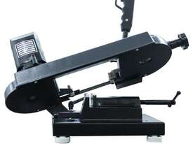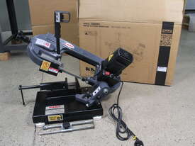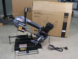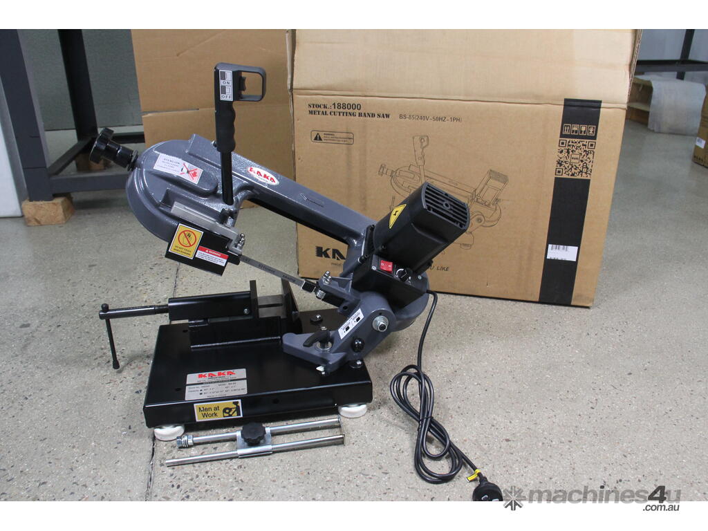 The kang Bandsaw BS-85 is a compact, portable metal-cutting bandsaw designed for hobbyists and small workshops. This hand-operated machine features a powered blade with electronic variable speed control, making it suitable for precise straight and mitre cuts in metal. It includes a built-in vice for secure workpiece holding and allows cutting angles from 0° to 45°.