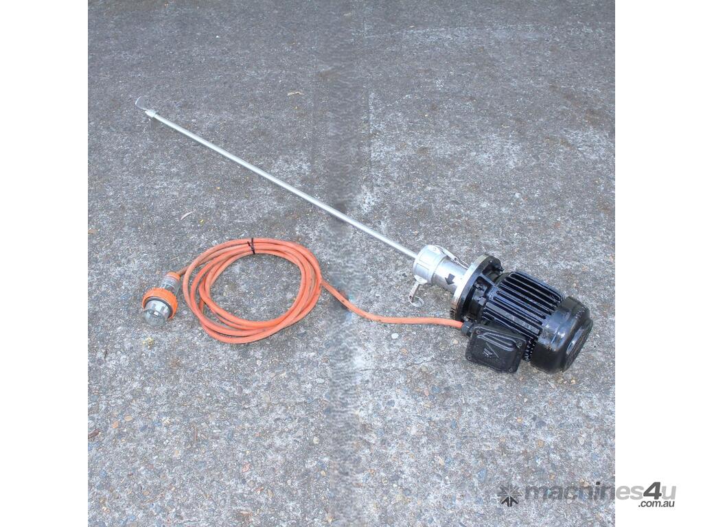 Portable Mixer, 1000mm long stainless steel shaft with camlock coupling and 130mm dia folding impeller, driven by 3phase 0.37kw 1400rpm electric motor