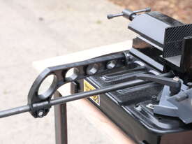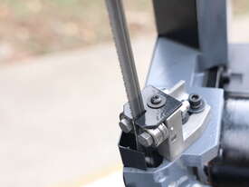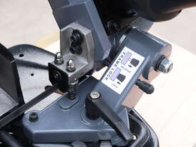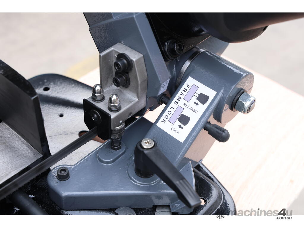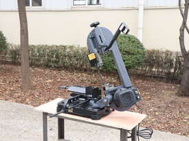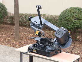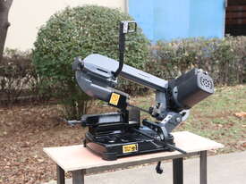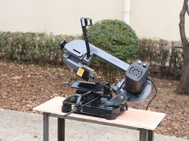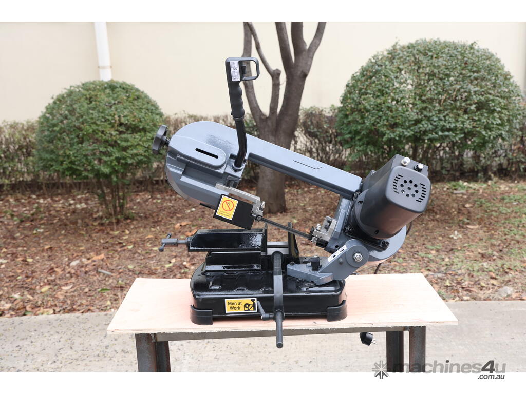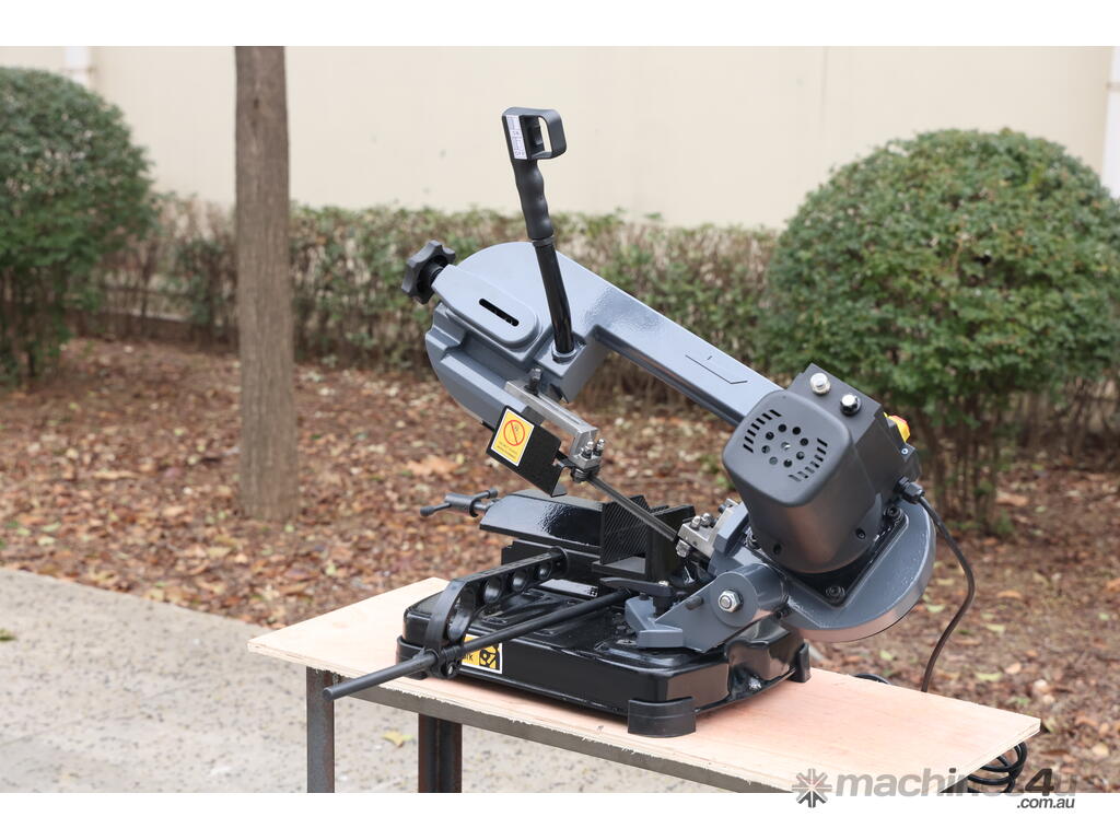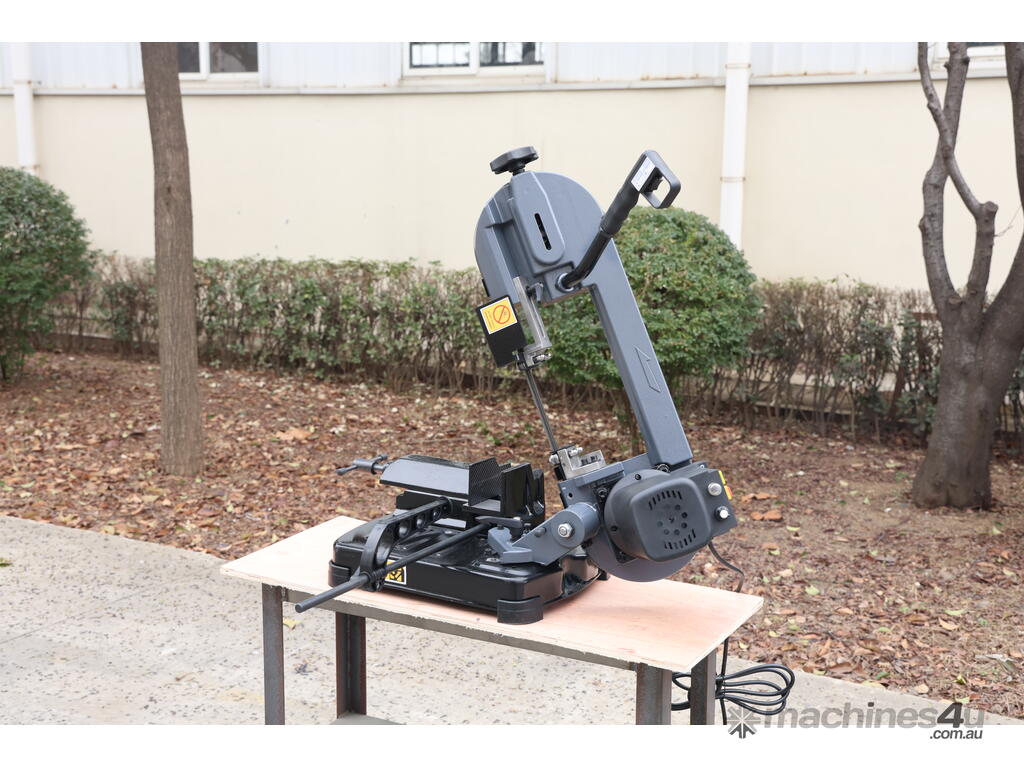This is a compact, lightweight, portable metal cutting band saw designed for precise, on-site or workshop cutting of metal (steel, non-ferrous metals like aluminium, brass, etc.), pipe, tube, and even some wood/plastics in a pinch. It's a small swivel-head model bandsaw, emphasising portability and space-saving for home workshops, model engineers, farmers, tradespeople, or mobile repair work.