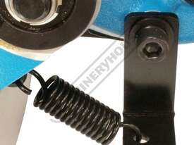 The blade is firmly guided by double ball bearing and is driven via the direct drive motor fitted with variable speed, so the blade speed can be adjusted to suit the task in hand. The conveniently located hand trigger switch on the bow and a spring system supports the weight of the bow during operation. This is a compact and very well made machine and it can be relied on to deliver an accurate cut every time.