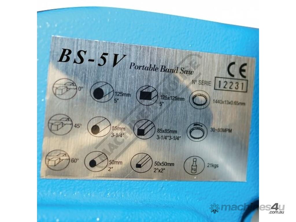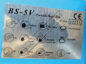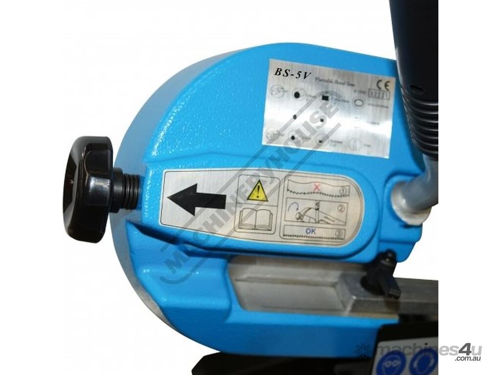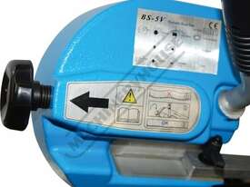 The BS-5V is the smallest portable swivel head metal cutting band saw in our range. It is very suitable for the home model engineer where space may be tight but an accurate machine is required. Constructed mainly from cast alloy and steel, it has a very rigid bow that enables a high degree of tension to be applied to the blade. The whole bow and motor assembly can be swivelled from 0° to 60° to create accurate mitre cuts.