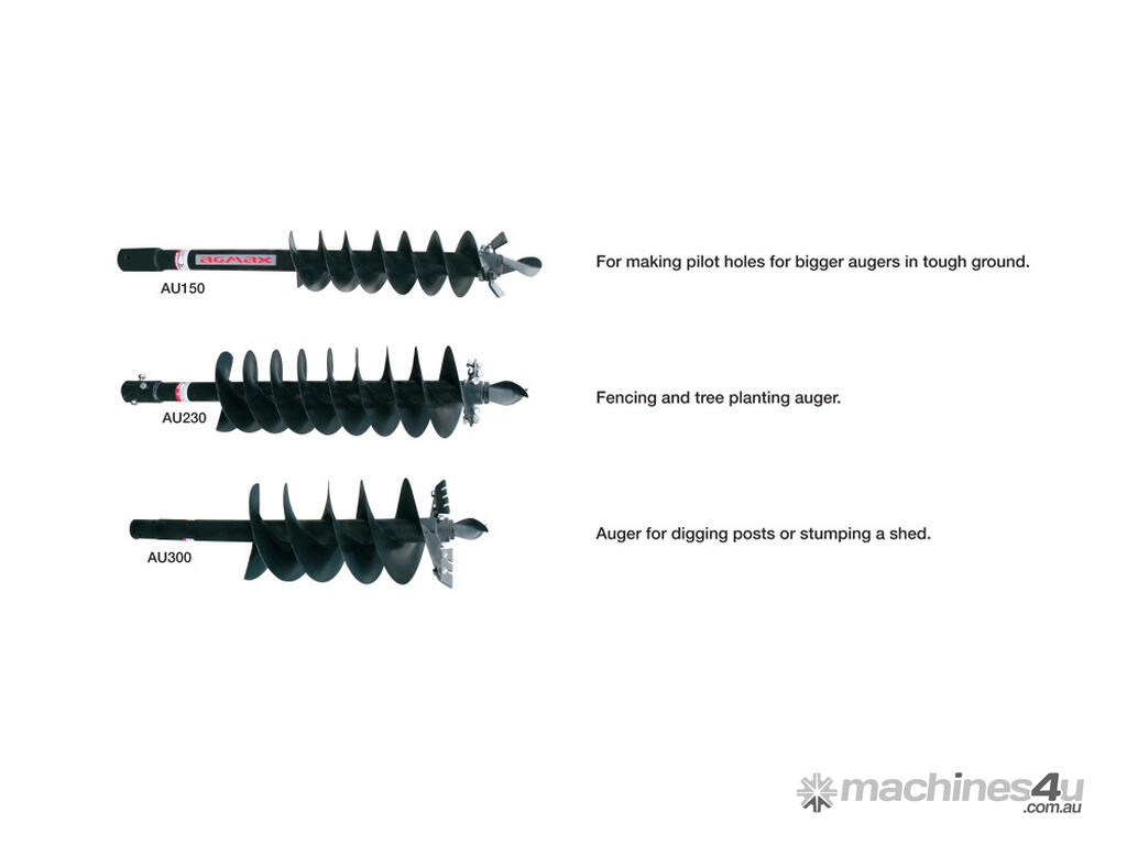 Suitable for larger jobs, the AGMAX AU300 (12") auger is useful with digging stay posts or stumping a shed. Using a 25hp tractor and above is recommended.