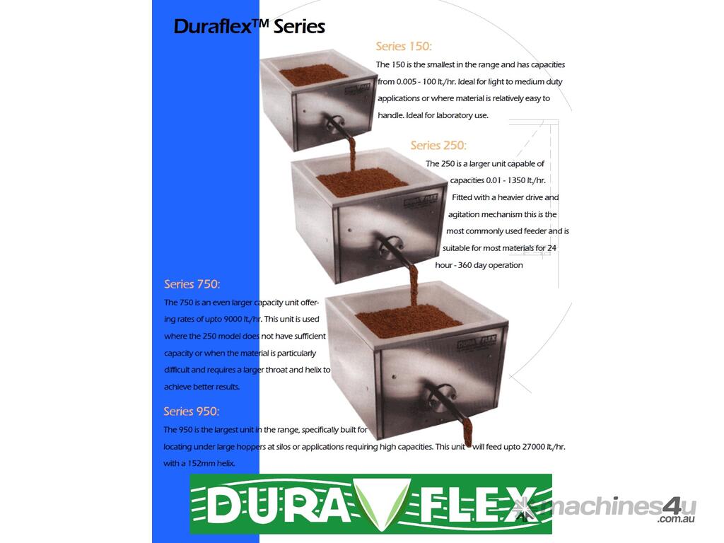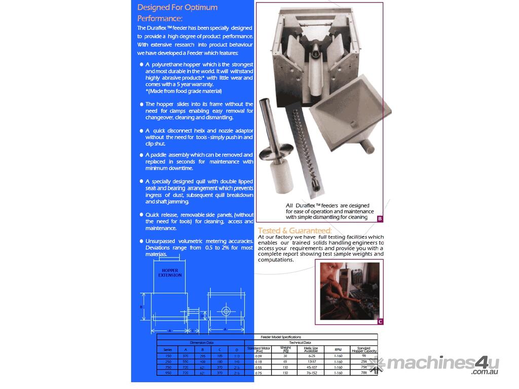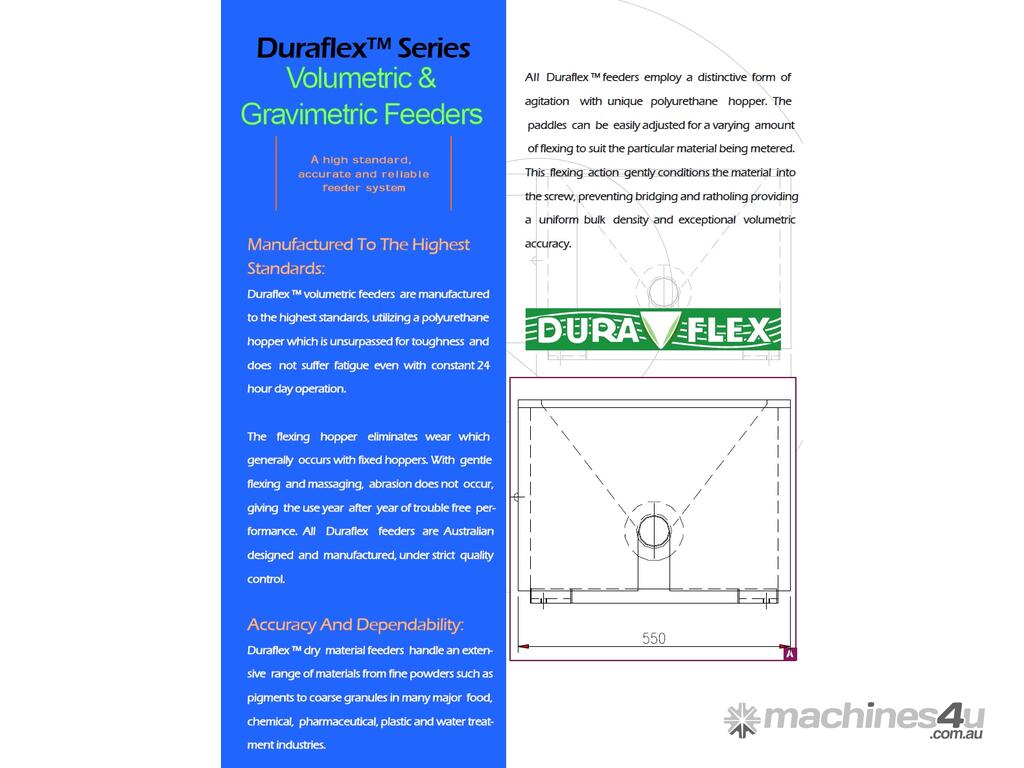 The Durafeeder hopper can also be provided with extension pieces in food grade material to hold more material or transition pieces and can be fed by level controllers or by using Durabins to feed from above.
