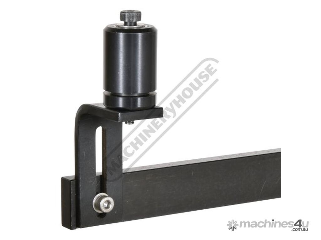 Adjustable heavy duty single arm length stop with 1 round roller & guide fence