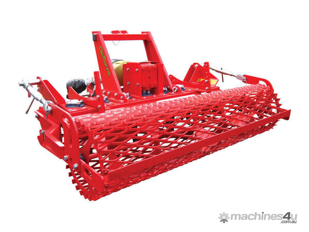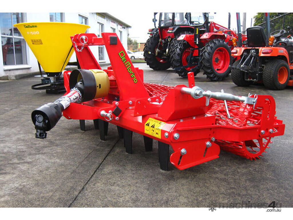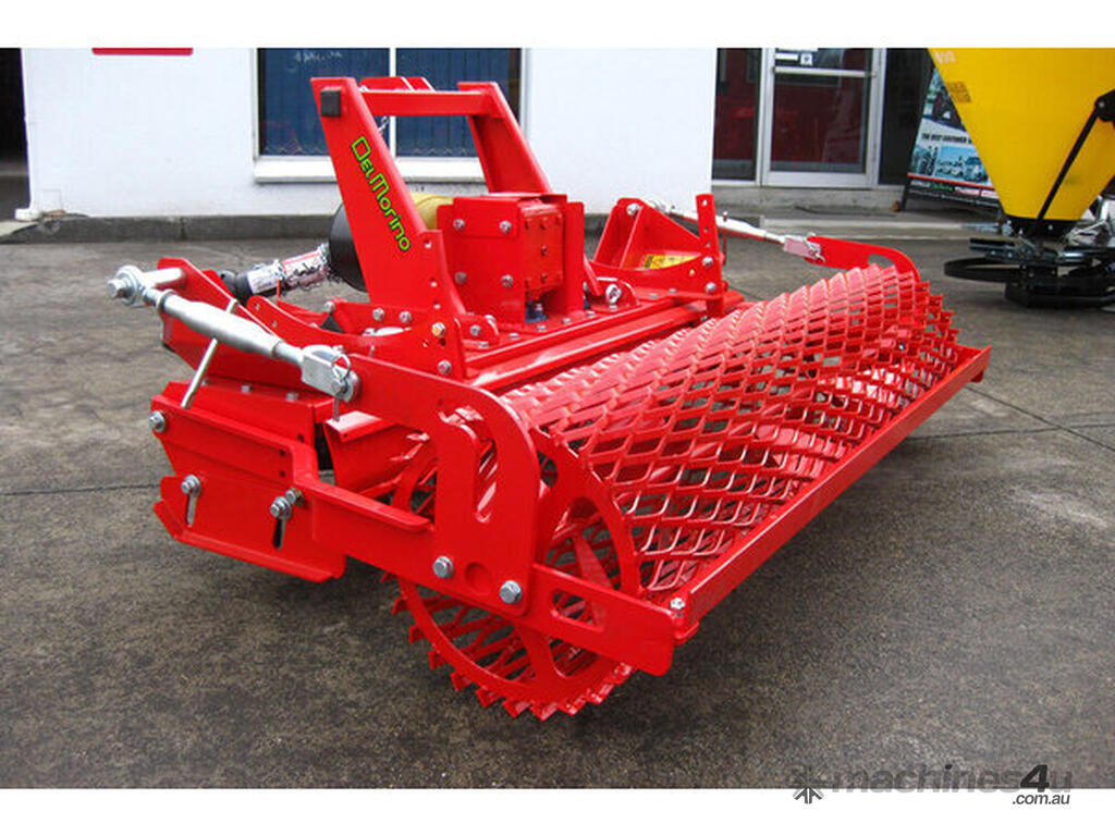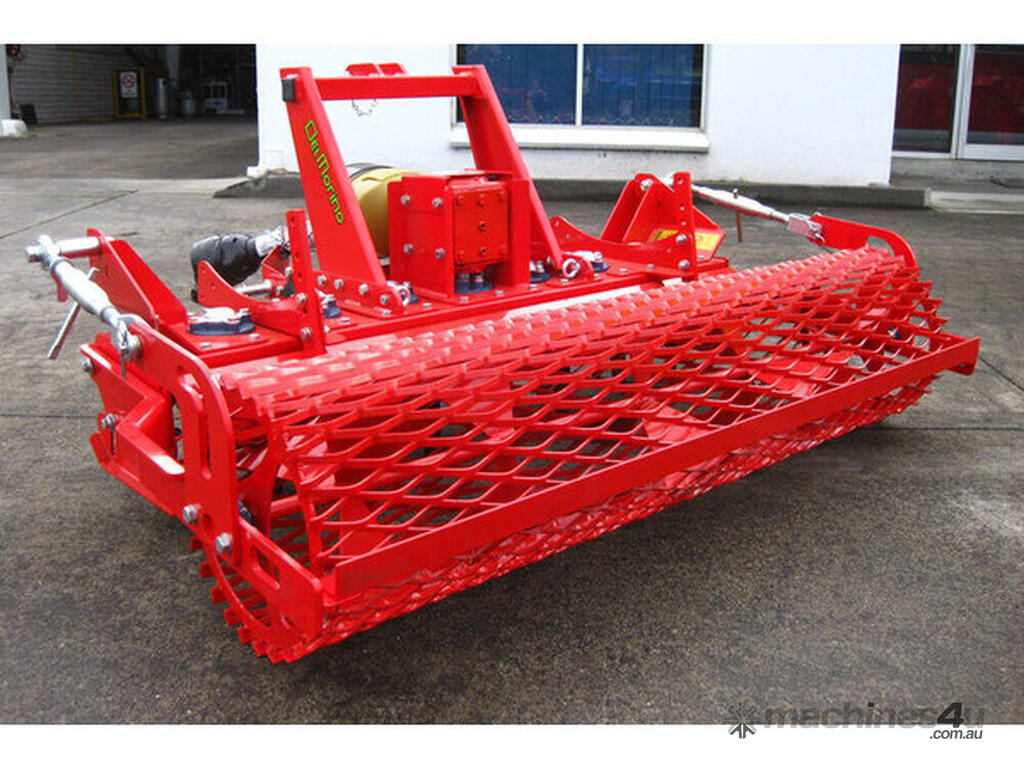Del Morino Rotex 150cm power harrow, including cage roller (150cm) suits tractors 35-55hp. 2 year warranty. Perfect seed beds, higher yield crops. Quality Italian engineering in this harrows allows wide width in breaking up, refining and distributing soil. Please note, in photos, the optional screen roller is shown, not the cage roller.