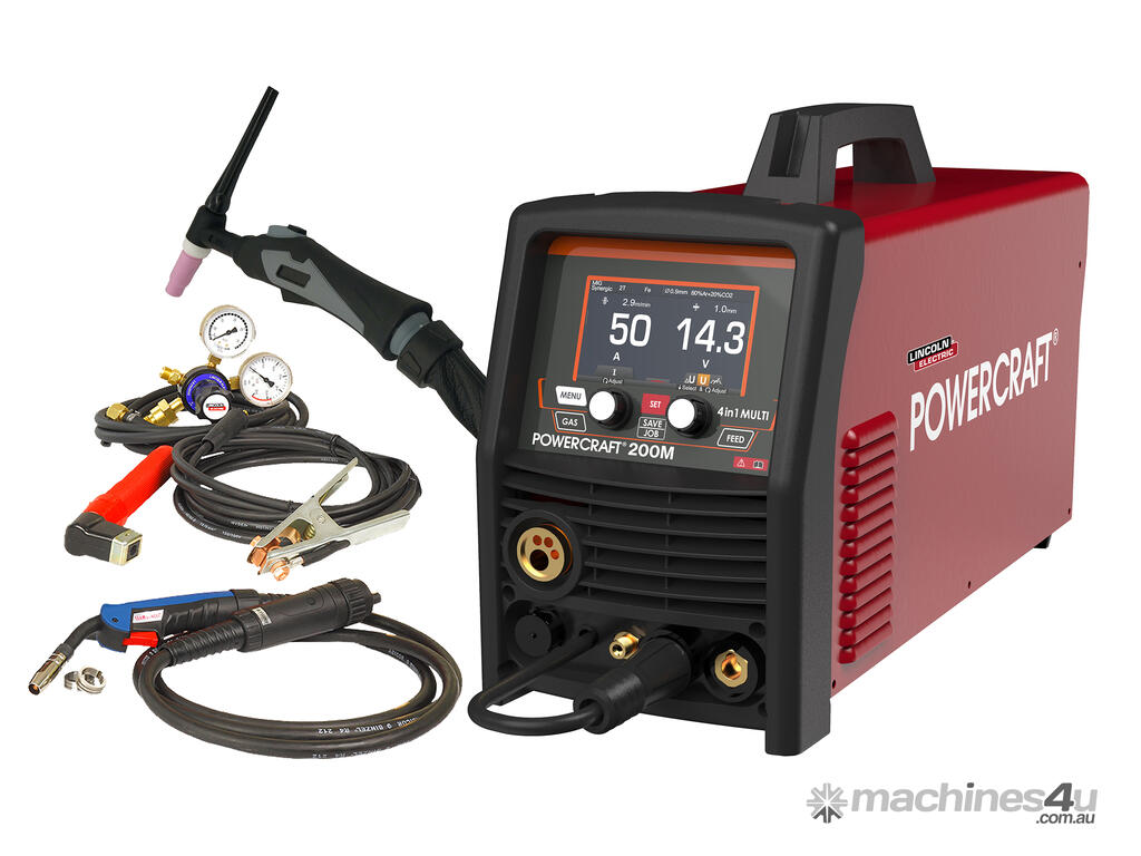 The Powercraft 200M is a versatile, portable, and powerful multi-process welder that combines MIG, flux-cored, stick, and pulse AC/DC TIG welding into one machine. Designed for use in workshops or on-site, it is ideal for contractors, fabricators, maintenance/repair teams, and DIY enthusiasts. The 200M is equipped with innovative features such as EZYSET technology, ensuring high-quality welds, and a digital LCD display for seamless operation.
