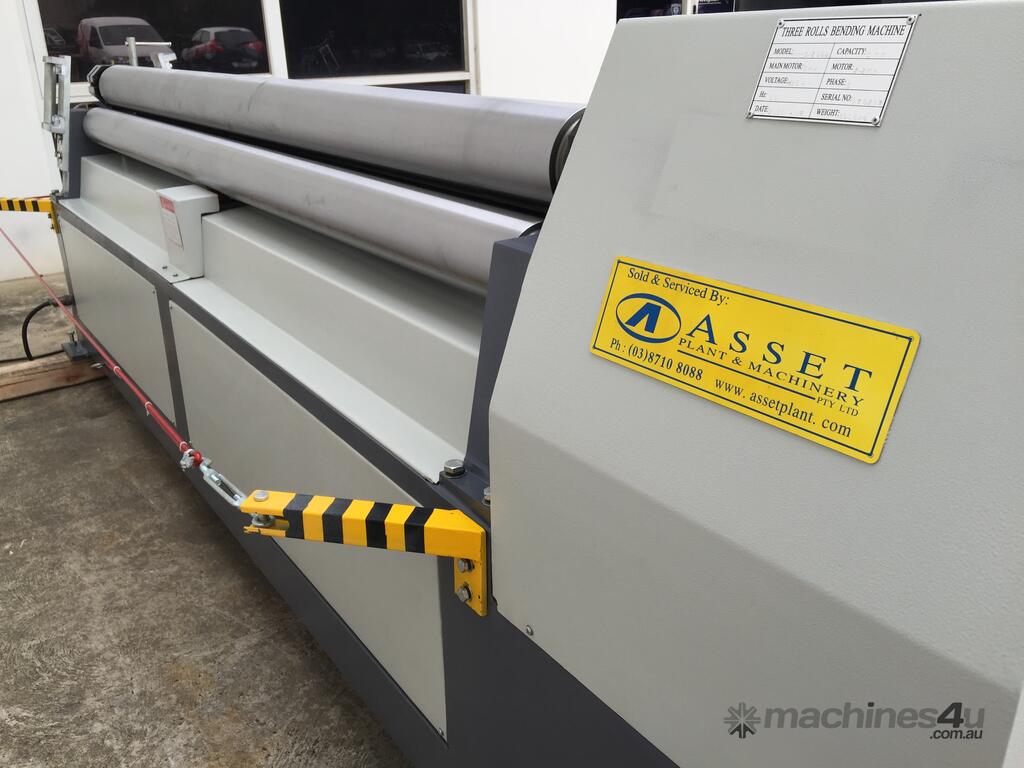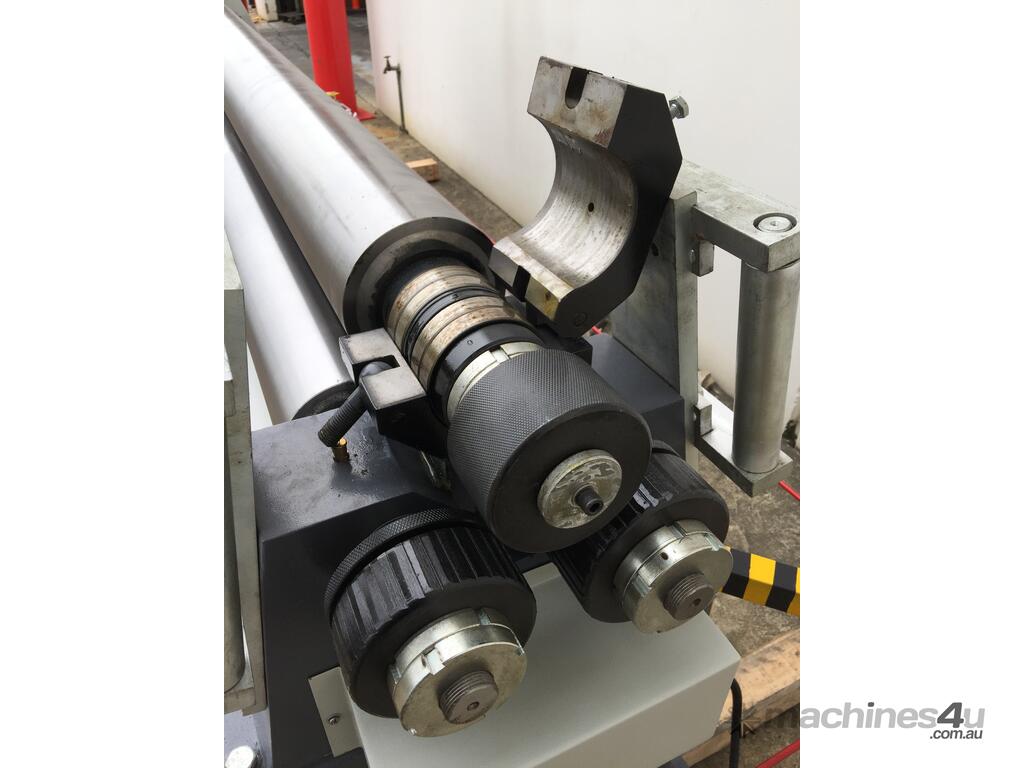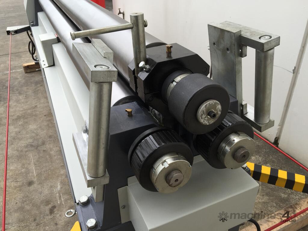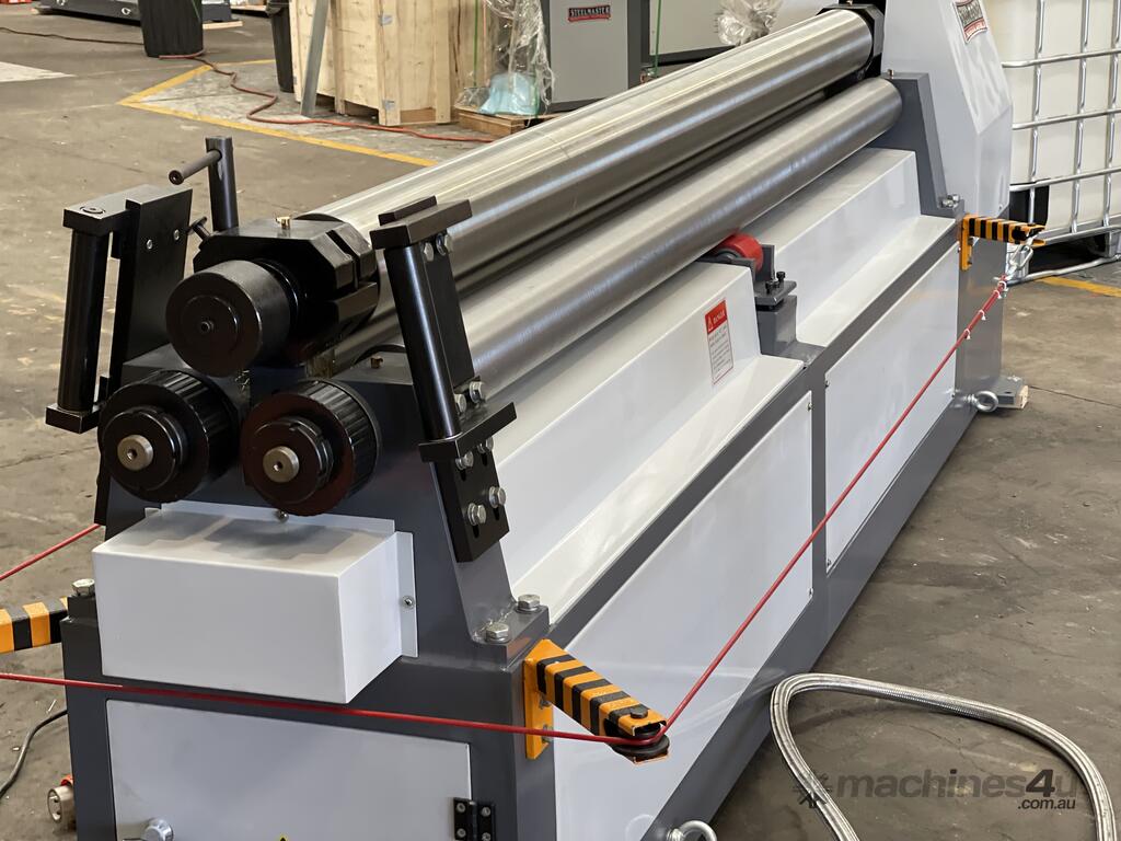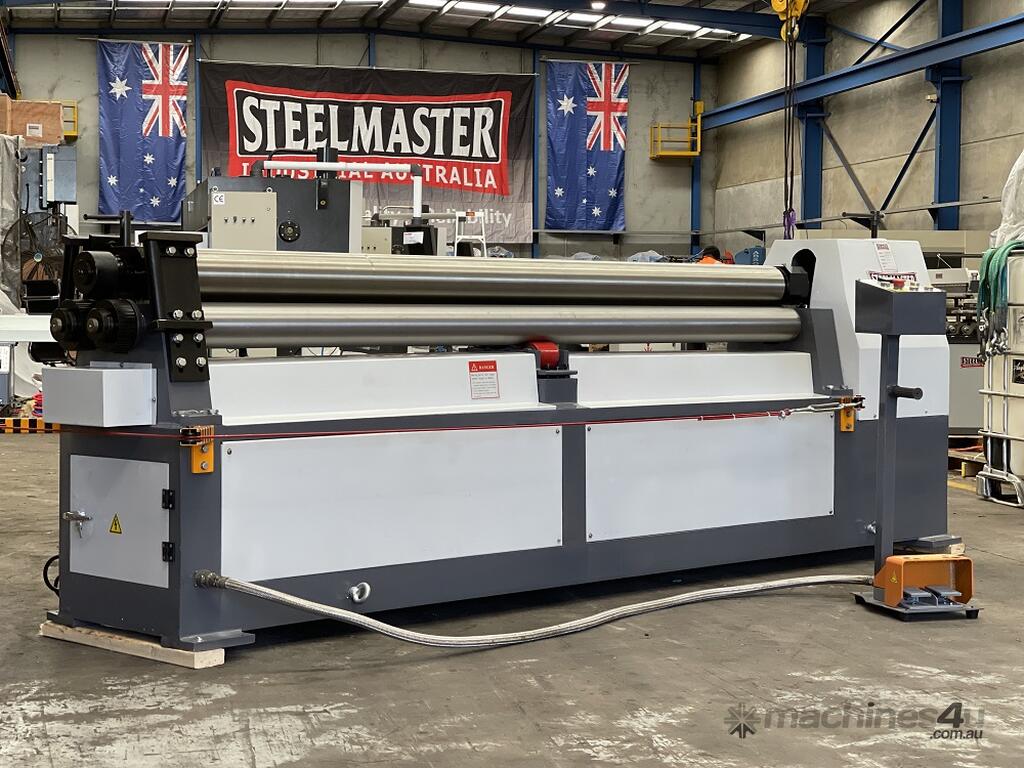 SM-MCR2503. Plate / Curving Rollers. 2500mm x 4mm Capacity. Steelmaster Motorized Operation. Swing Out Top Roller & Safety Cable. Fitted with Stub Extension Sections Rollers.