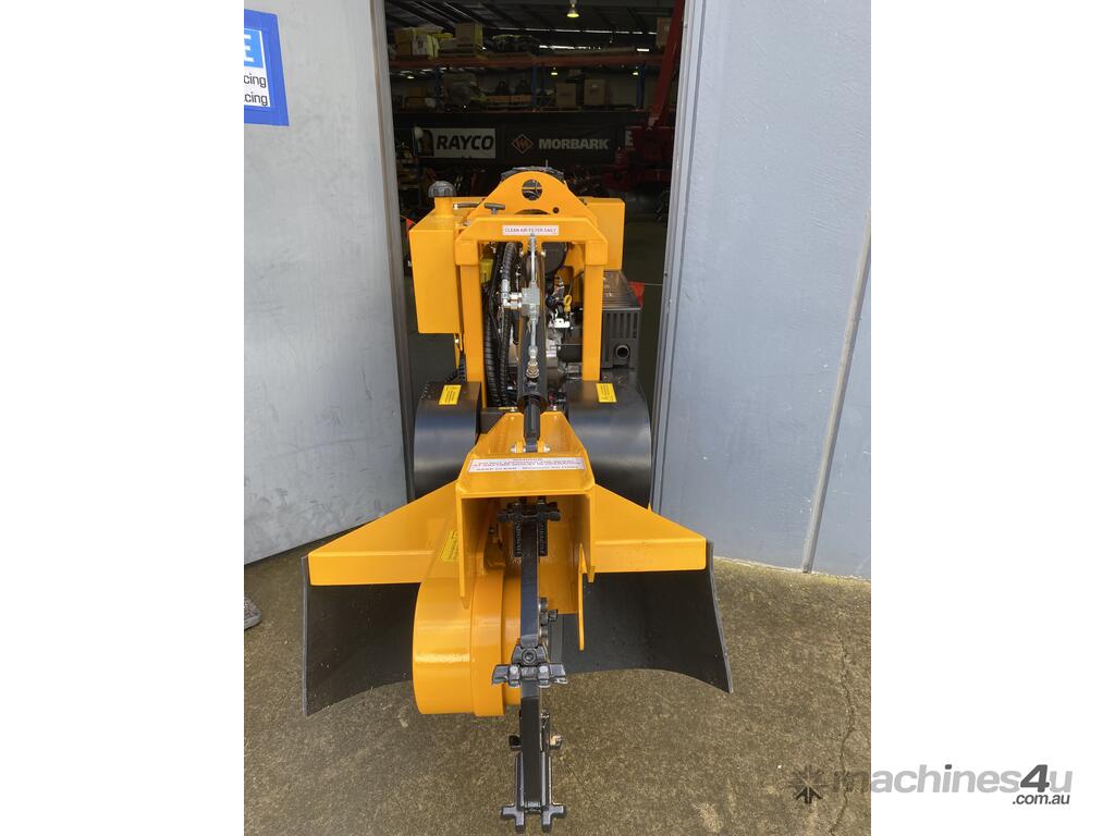 Max. stump diameter to be cut is in fact unlimited. The tracked chassis is wheel-track-adjustable. Its low centre of gravity provides high stability of the machine also under worse field conditions with maximum work safety. Minimum track base makes also limited spaces and narrow sites more accessible. It can even pass through a narrow garden gate and your typical standard door. Its hydraulic control and remote controller facilitate any handling at work and make manual labour much easier. This machine is powered by a 38 HP petrol kohler engine.