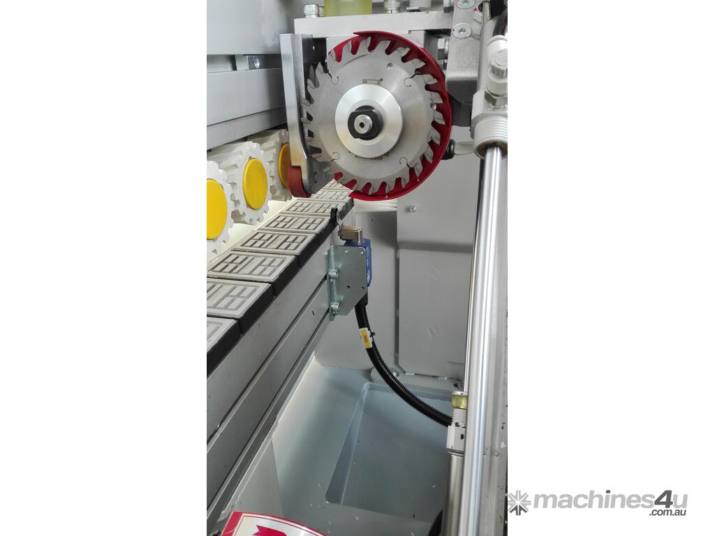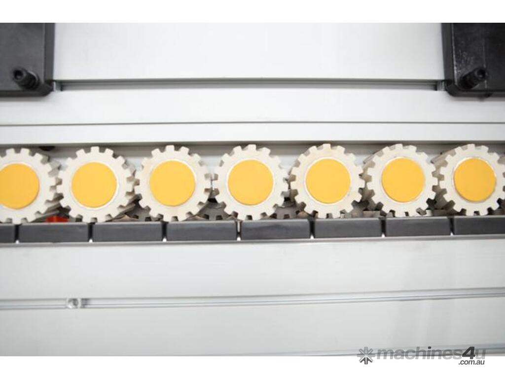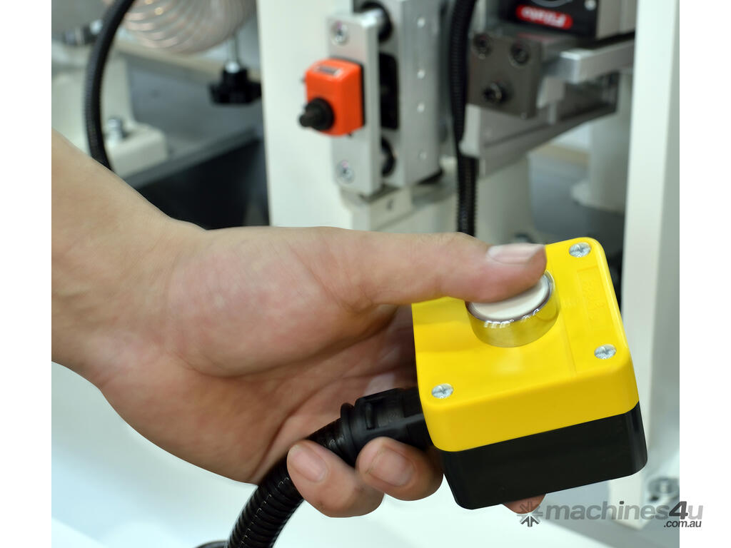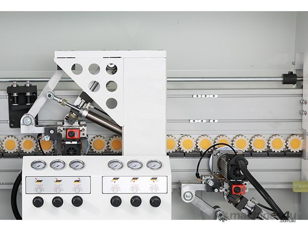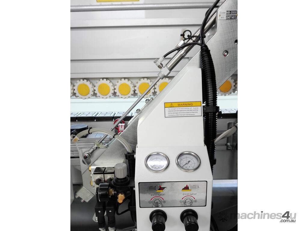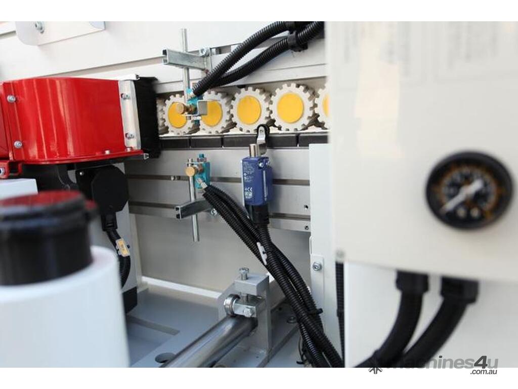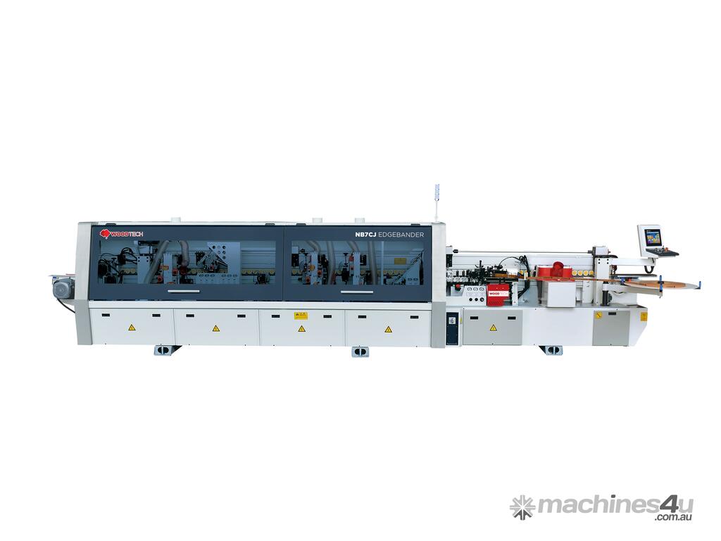 The Wood Tech NB7CJ is an advanced single sided edgebander for everyday high production needs. Featuring pre-milling, pre-heating, glut pots, end trimming, rough trimming, fine trimming, corner rounding, scraping and buffing.