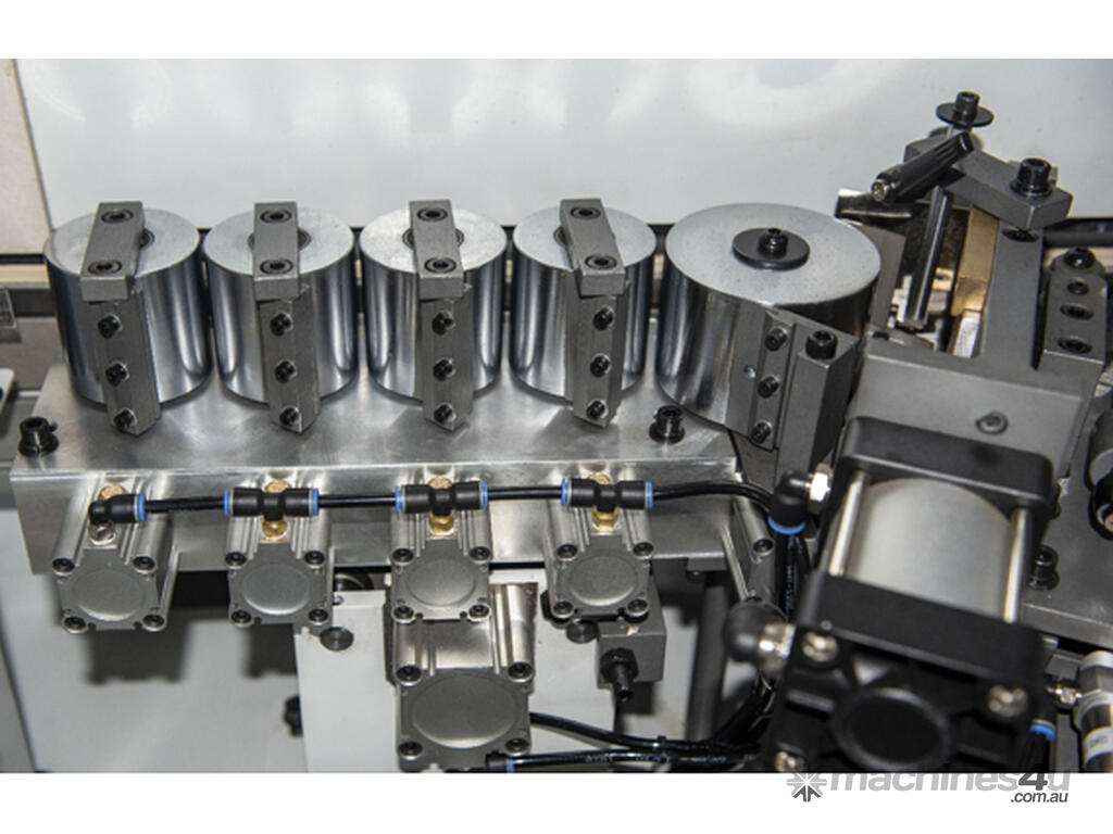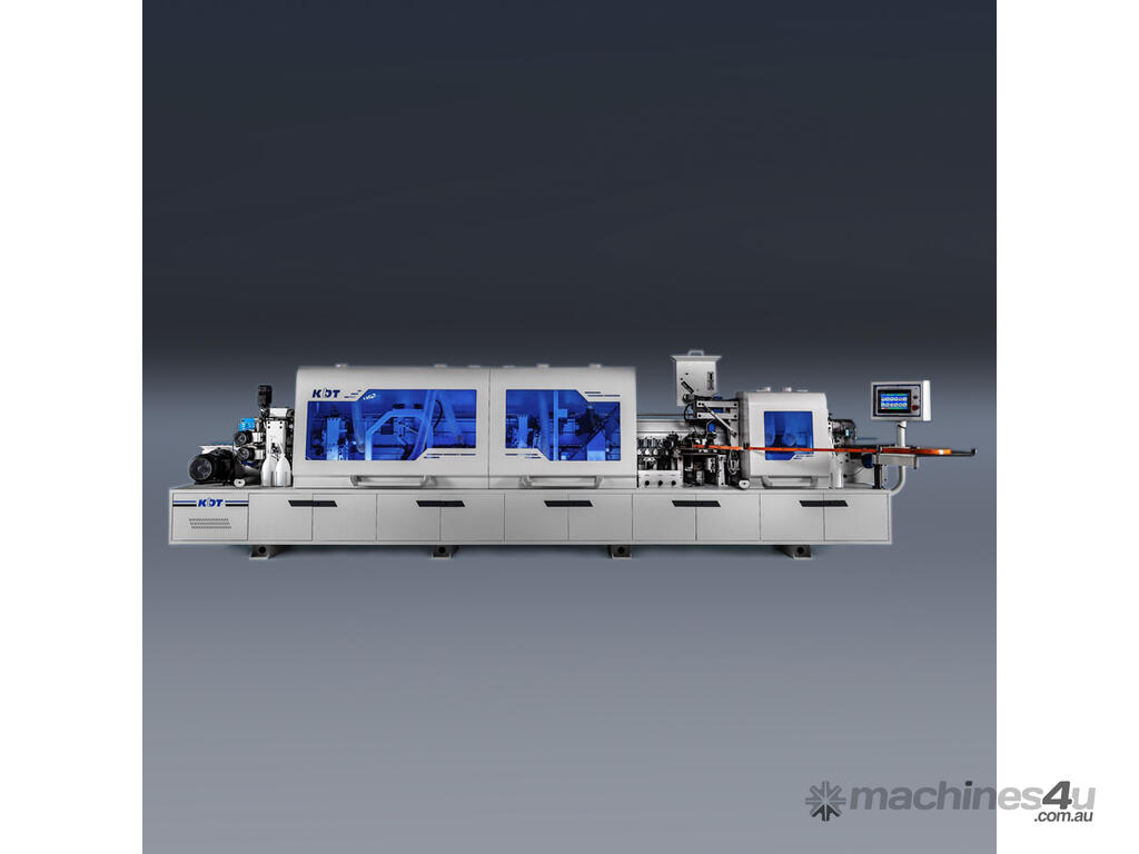 Heavy duty, high speed KDT 665JMSO edgebander with premiloing, sprays, glue scrapers and programmable corner rounding.