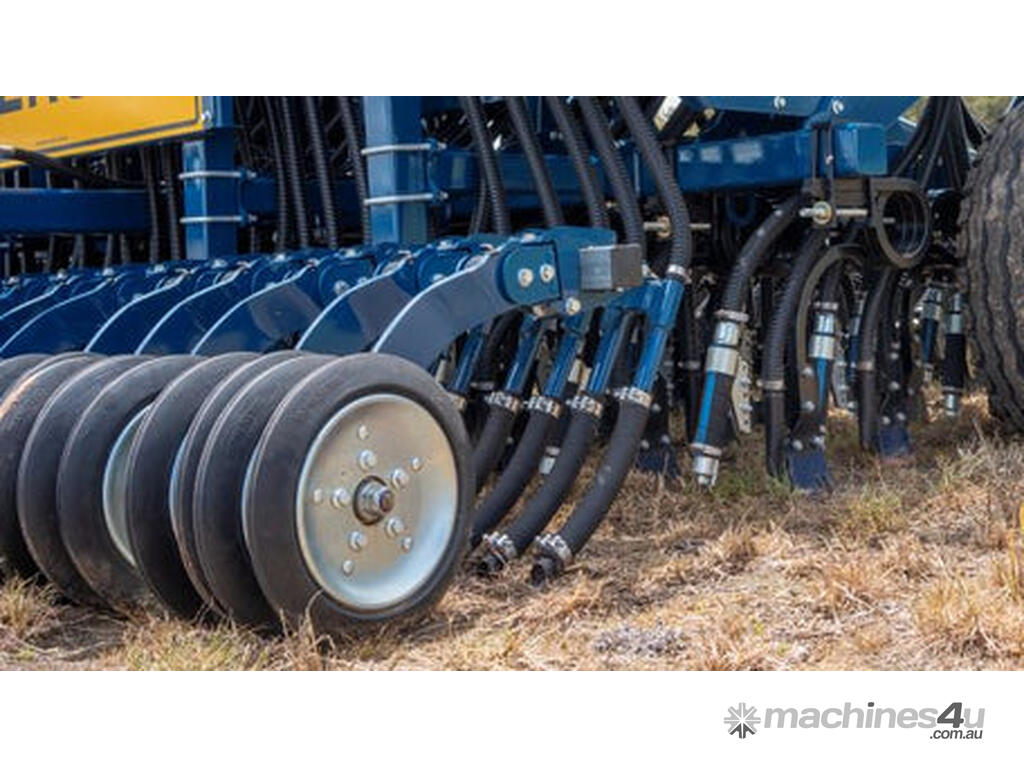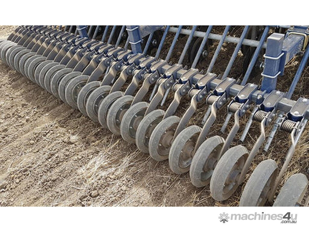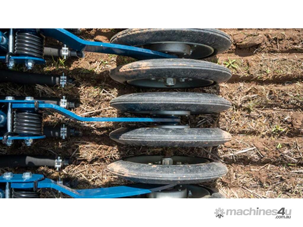 Single wheel units are available for spacings above 175 mm whilst dual wheel units are available to reduce the overall cost-per-row for narrower 125 and 150 mm spacings. Optional small seed tubes are available to allow seeds from the small seeds box to be delivered in front of each presswheel, ensuring they are subject to uniform pressure to maximise germination.