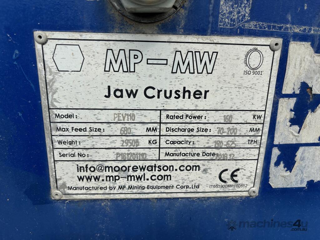 - Skid mounted / modular PEV-110 Primary Jaw Crusher Unit 44" x 34" / 1120mm x 865mm