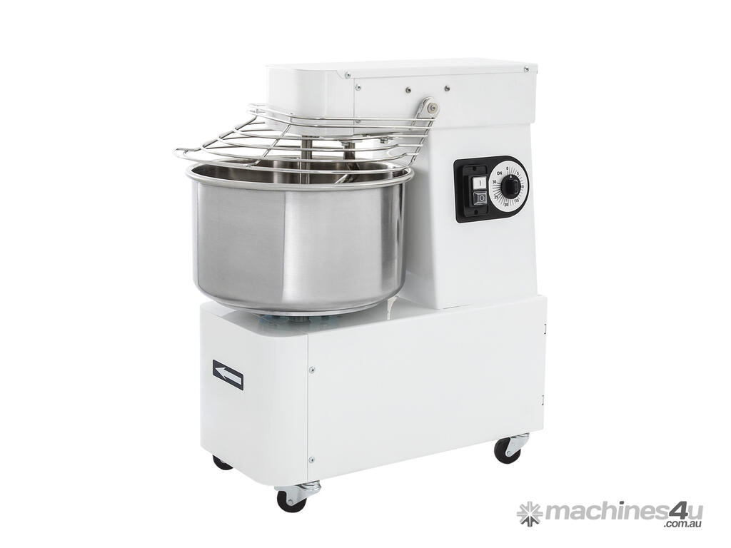 Prismafood Spiral Mixers SFM40 Discover the most comprehensive and efficient spiral and dough mixers within the industry with this Italian-made automatic mixer from catering equipment giant, Bakermax . Browse one of the most practical appliances for your bakery or pizzeria. We stock a huge range of dough mixers with a variety of sizes on offer from only the best global brands. Fixed Head 41 Liter/35kg mixer Features Speed: Bowl 10RPM, Spiral arm 120RPM Italian made Hygenic stainless steel body Stainless steel bowl hooks & shaft Lift safety guard Castors Simple to use controls Timer Max Flour 21.5 kg Water: 10.75 kg Min Dough Weight: 8kg Max Dough Weight: 32kg Dough/hour: 112kg Bowl diameter: 45cm Dimension: 480W X 805D X 825H Total dry ingredients which would include 2% salt, 1% sugar 1% yeast, and 5% oil in the case of the majority of pizza doughs. Also, most pizza dough has approx. 60 to 65% water depending on the quality of the flour used and the maker's preference Overloading machines and/or using the incorrect speed can cause damage & will void the warranty. 2 Years Parts and Labour Warranty Depth: 805 mm | Width: 480 mm | Height: 825 mm | Power: 240V; 1.1kW; 10A outlet required | Net Weight: 95.4 | Price: $4190 | Manufacturer: Prismafood | Warranty: 2 Years Parts and Labour