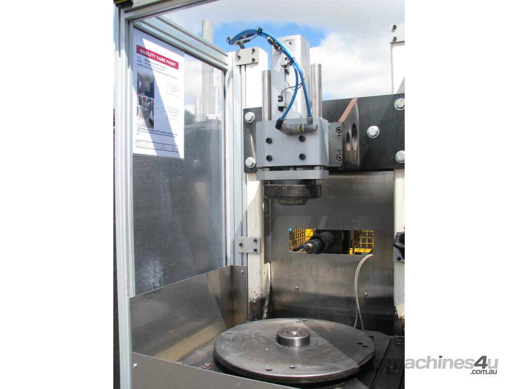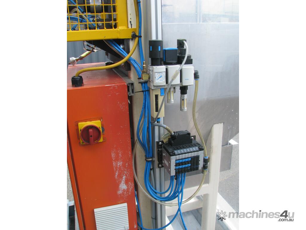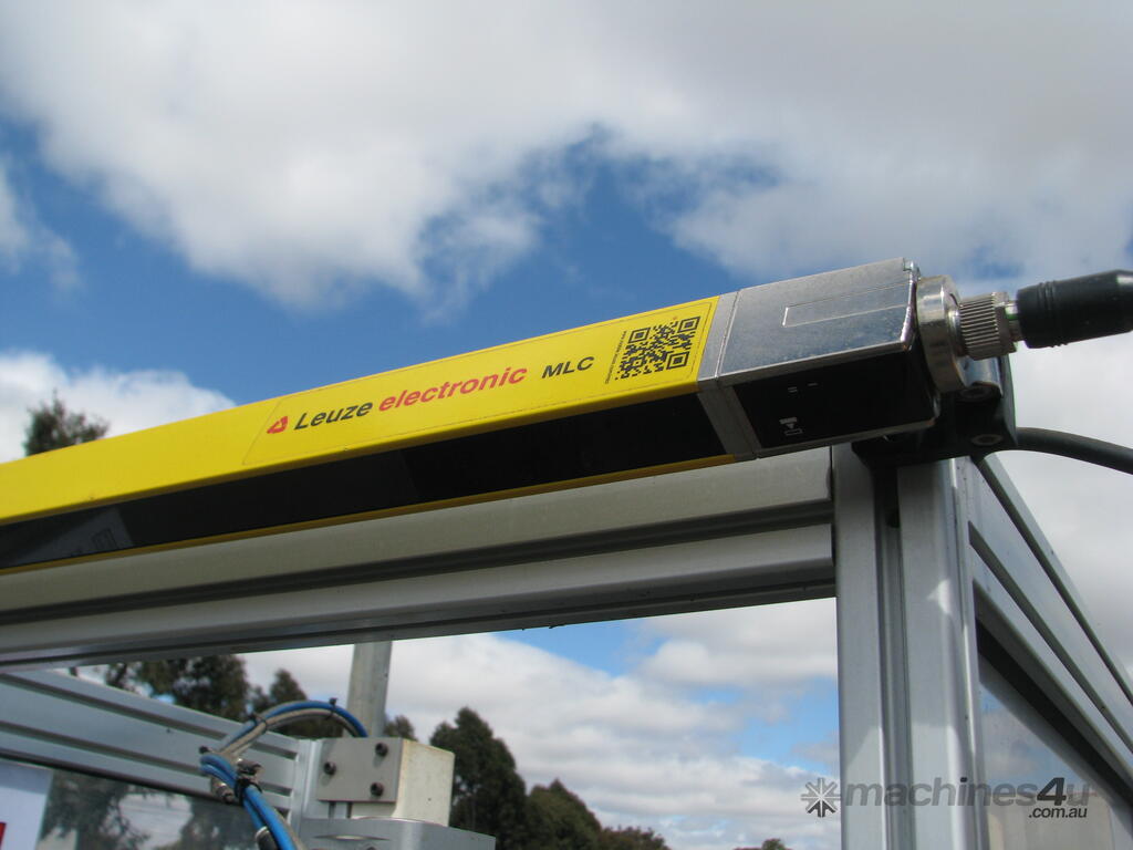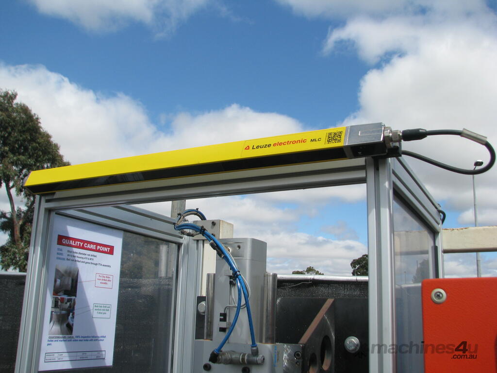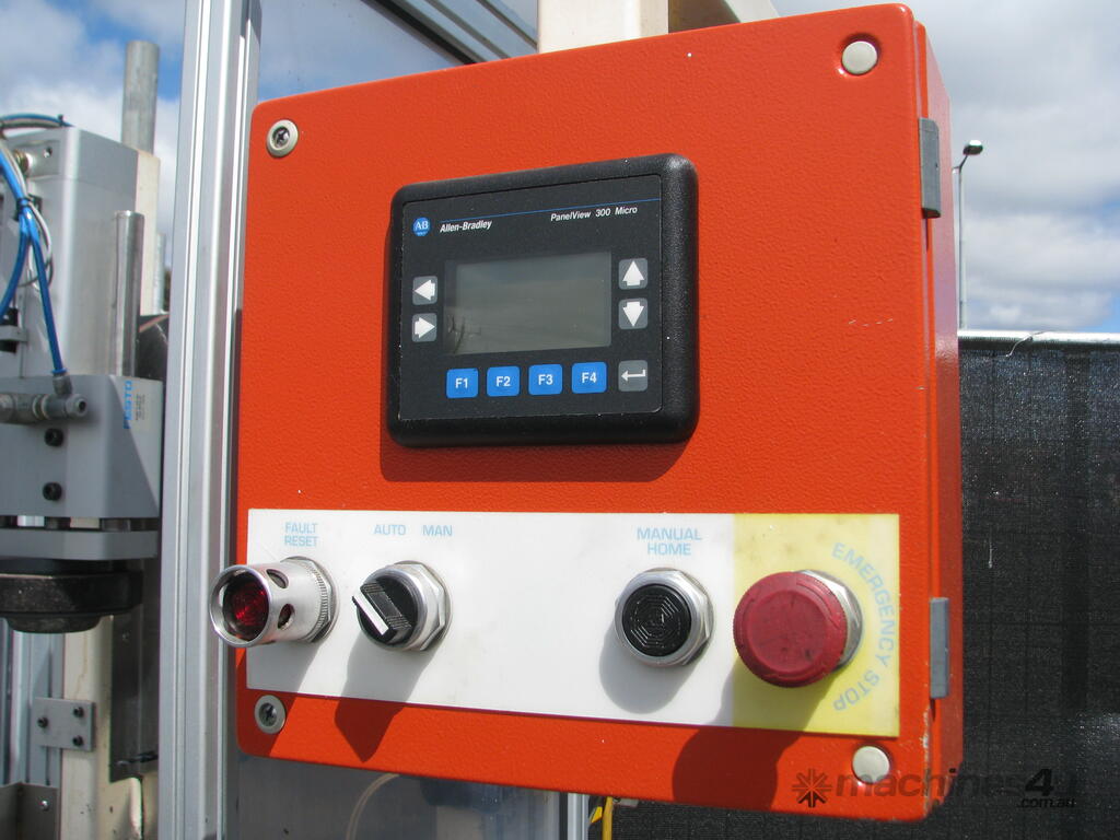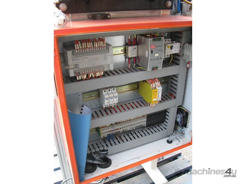 Has a rotary indexing table, an Allen-Bradley PLC and a couple of Leuze safety curtains built on.